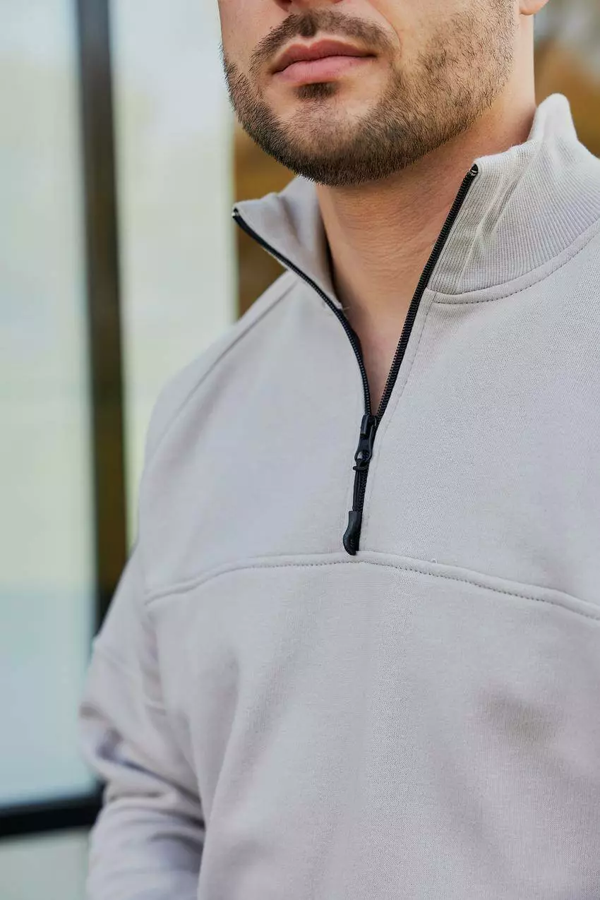 Чоловічий джемпер з блискавкою на горловині світло-сірий (М180.3) L
