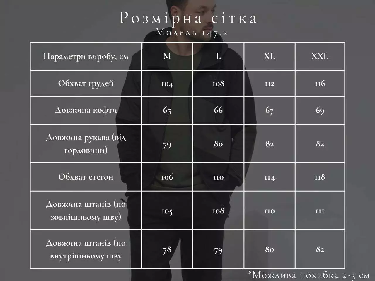 - Параметри: XXL, XL, M, L