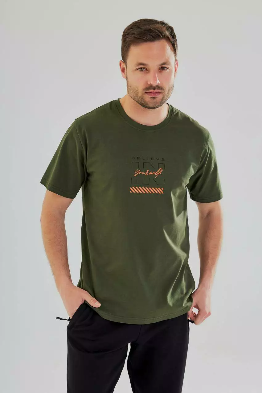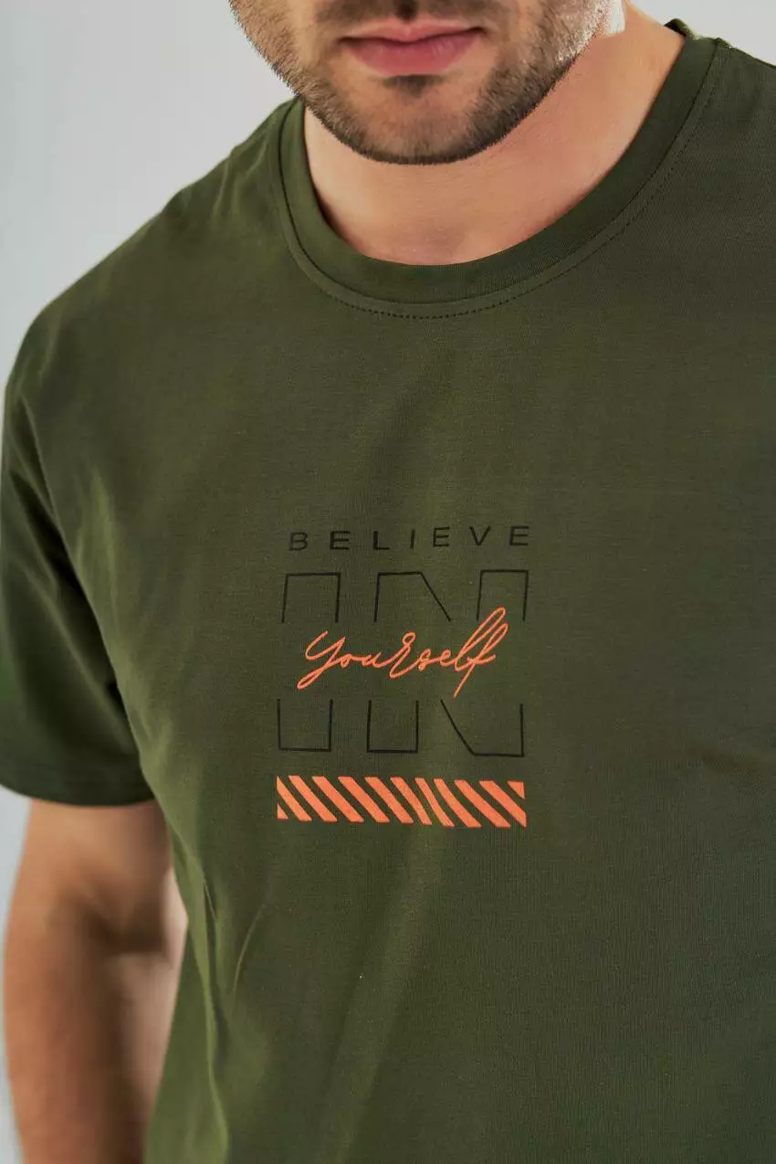 Футболка чоловіча з принтом "Believe in yourself" хакі (М45.3) M