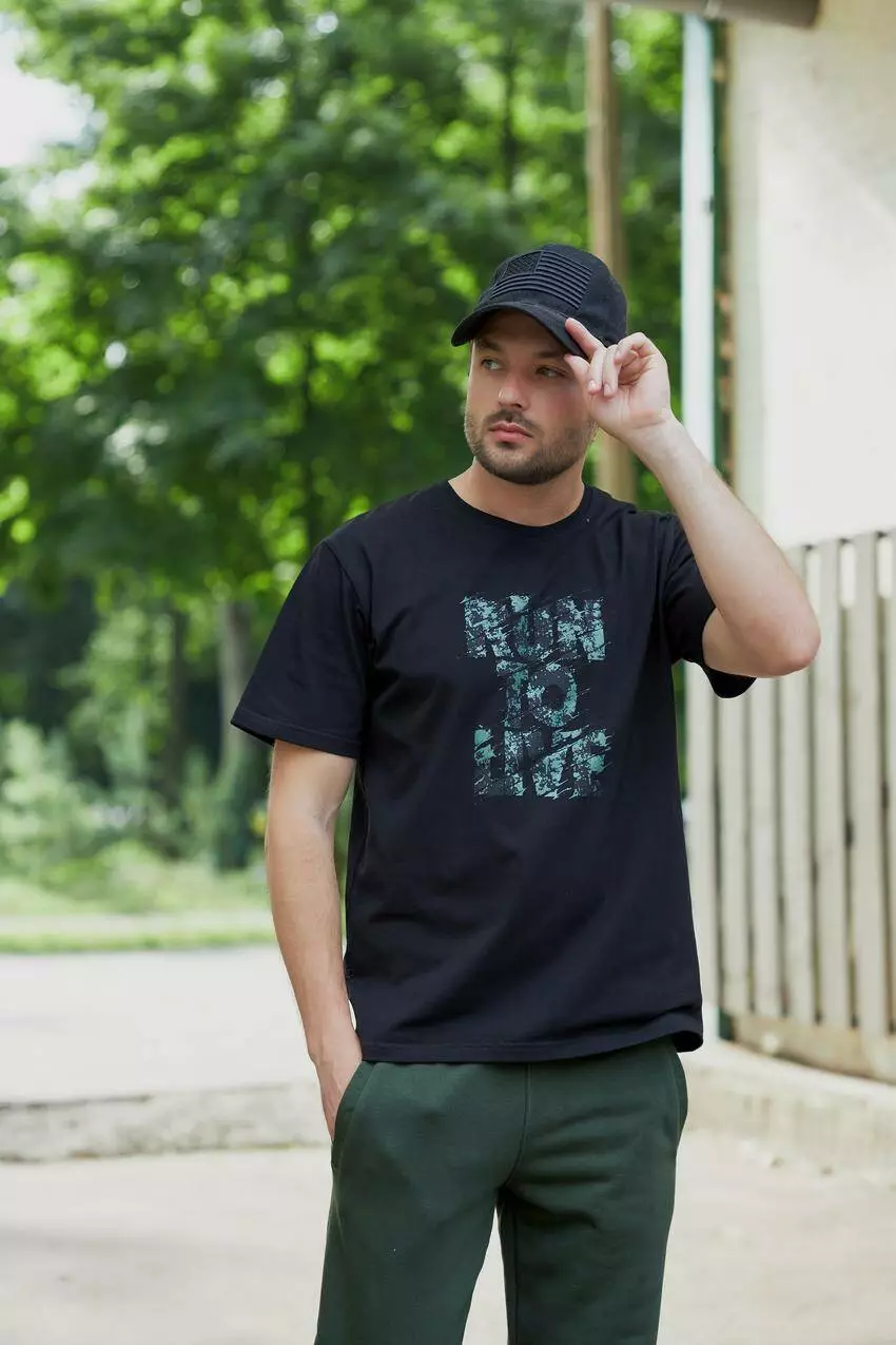 Футболка чоловіча з принтом "Run to live" чорна (М45.4) M