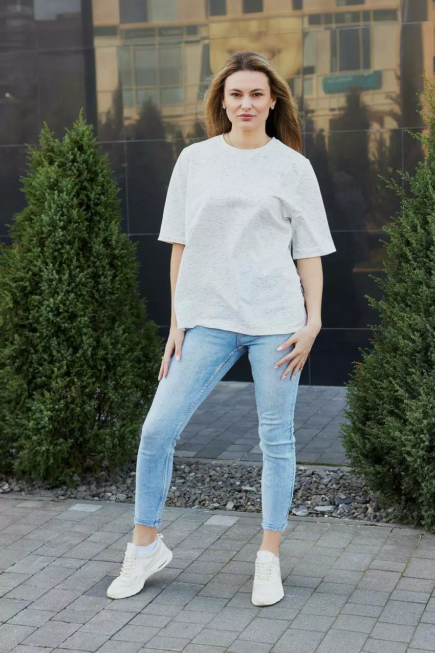 Жіноча футболка оверсайз з двонитки — стильний комфорт у кожному русі Базова оверсайз футболка — це маст-хев для тих, хто цінує поєднання сучасного стилю та абсолютного комфорту. Виготовлена з якісної двонитки, футболка відрізняється міцністю, приємною текстурою та довговічністю. Натуральний склад матеріалу дозволяє шкірі "дихати", що робить цю модель ідеальною як для літніх днів, так і для багатошарових луків у прохолодну погоду. Вільний крій забезпечує свободу рухів і створює трендовий силует, який підходить для будь-якого типу фігури. Ця футболка легко комбінується з джинсами, шортами, легінсами або спідницями, дозволяючи експериментувати зі стилем — від casual до streetwear. Завдяки універсальному дизайну, футболка стане чудовою основою для повсякденних образів, прогулянок, подорожей або навіть для домашнього затишку. Підкресліть свою індивідуальність, додавши аксесуари або вдягнувши поверх сорочку чи жакет. Переваги: Високоякісна двонитка — міцність і комфорт Модний оверсайз крій Підходить для будь-якої пори року Ідеальна база для різних стилізацій Легка у догляді, зберігає форму після прання Жіноча футболка оверсайз — це свобода самовираження та комфорт щодня!