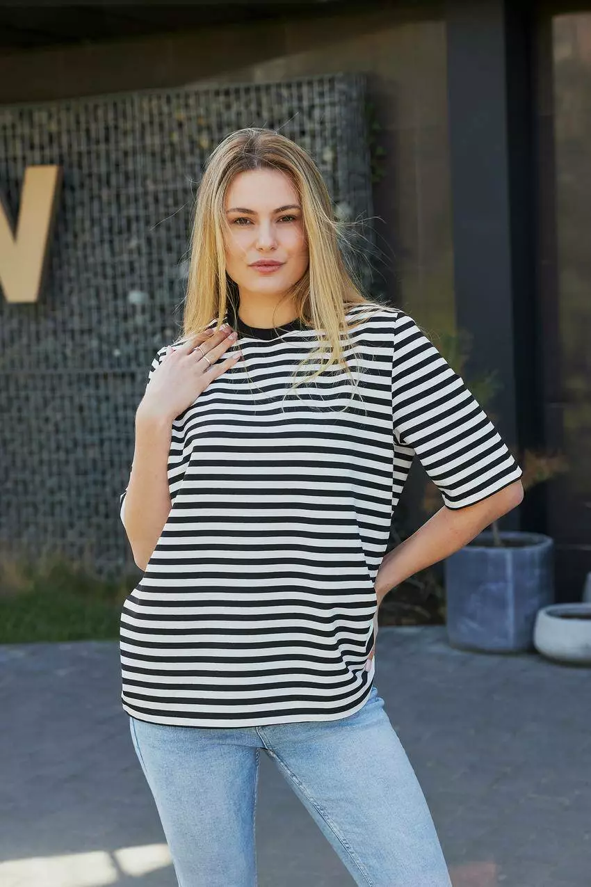 Футболка двунитка оверсайз жіноча в смужку (М184.2) M