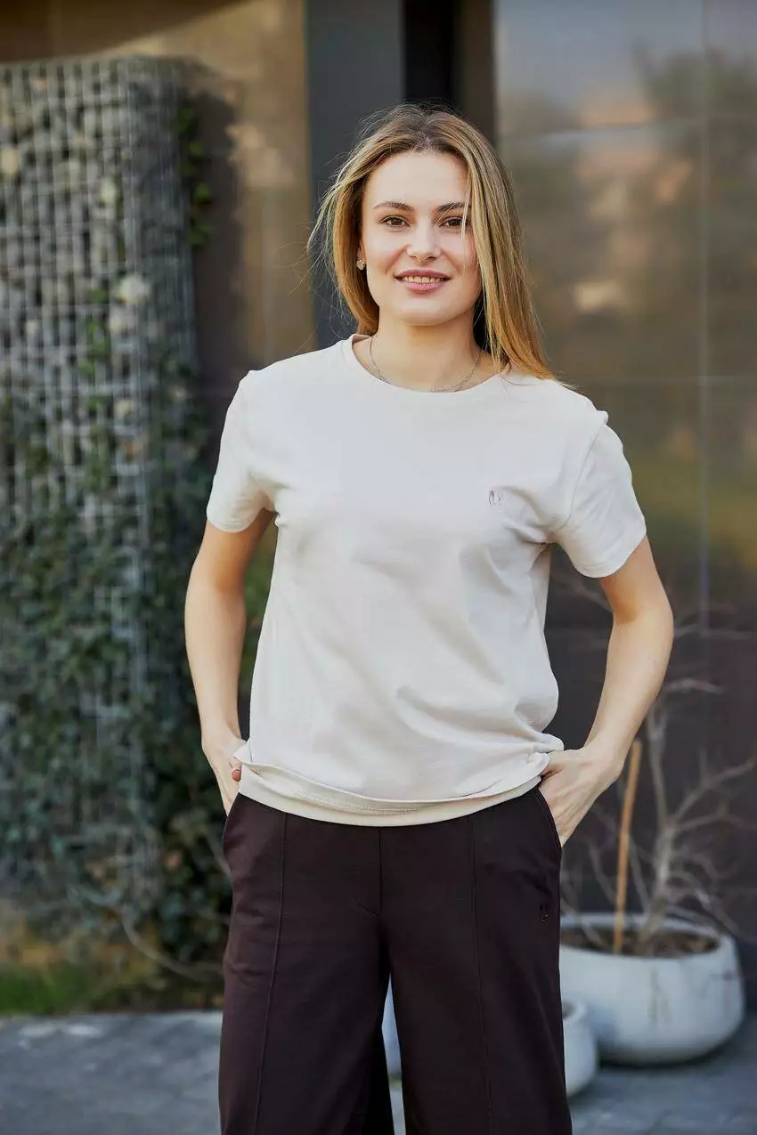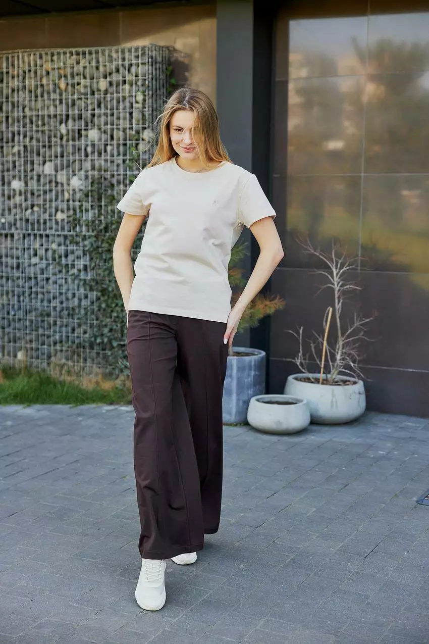 Базова жіноча футболка — універсальний елемент гардеробу для будь-якого образу Стильна та зручна базова жіноча футболка — це незамінна річ для кожної жінки. Завдяки лаконічному дизайну та однотонному забарвленню, вона легко поєднується з будь-якими елементами гардеробу, дозволяючи створювати як повсякденні, так і більш елегантні образи. Виготовлена з м'якого, дихаючого матеріалу, футболка забезпечує максимальний комфорт протягом усього дня. Класичний крій красиво підкреслює силует, не сковуючи рухів. Ідеально підходить для поєднання з джинсами, шортами, спідницями або під жакет чи кардиган. Базова футболка стане вашою улюбленою річчю у будь-яку пору року — носіть її як самостійно, так і в багатошарових луках. Переваги: Універсальний однотонний дизайн М'який і приємний до тіла матеріал Класичний крій, що пасує до будь-якої фігури Легка у догляді — зберігає форму та колір після прання Ідеальна база для будь-якого стилю Базова жіноча футболка — простота та елегантність на кожен день!