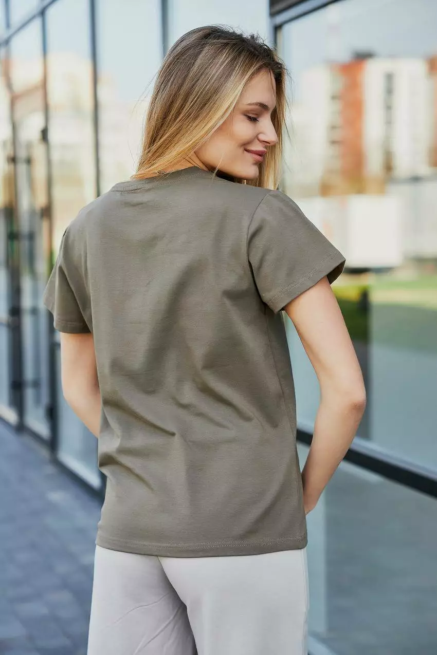 Базова жіноча футболка — універсальний елемент гардеробу для будь-якого образу Стильна та зручна базова жіноча футболка — це незамінна річ для кожної жінки. Завдяки лаконічному дизайну та однотонному забарвленню, вона легко поєднується з будь-якими елементами гардеробу, дозволяючи створювати як повсякденні, так і більш елегантні образи. Виготовлена з м'якого, дихаючого матеріалу, футболка забезпечує максимальний комфорт протягом усього дня. Класичний крій красиво підкреслює силует, не сковуючи рухів. Ідеально підходить для поєднання з джинсами, шортами, спідницями або під жакет чи кардиган. Базова футболка стане вашою улюбленою річчю у будь-яку пору року — носіть її як самостійно, так і в багатошарових луках. Переваги: Універсальний однотонний дизайн М'який і приємний до тіла матеріал Класичний крій, що пасує до будь-якої фігури Легка у догляді — зберігає форму та колір після прання Ідеальна база для будь-якого стилю Базова жіноча футболка — простота та елегантність на кожен день!
