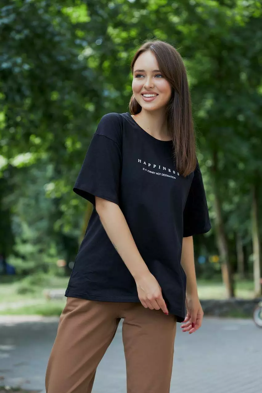 Футболка жіноча oversize "Happines" чорна (М130.7) S