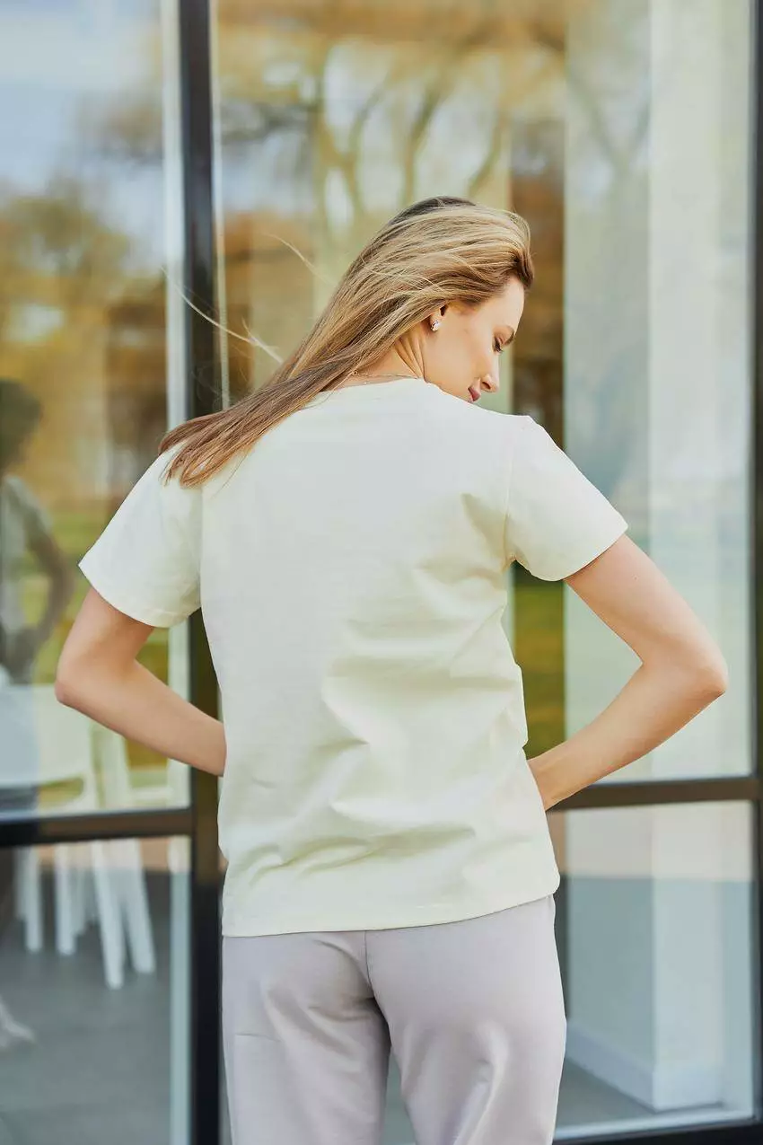 Базова жіноча футболка — універсальний елемент гардеробу для будь-якого образу Стильна та зручна базова жіноча футболка — це незамінна річ для кожної жінки. Завдяки лаконічному дизайну та однотонному забарвленню, вона легко поєднується з будь-якими елементами гардеробу, дозволяючи створювати як повсякденні, так і більш елегантні образи. Виготовлена з м'якого, дихаючого матеріалу, футболка забезпечує максимальний комфорт протягом усього дня. Класичний крій красиво підкреслює силует, не сковуючи рухів. Ідеально підходить для поєднання з джинсами, шортами, спідницями або під жакет чи кардиган. Базова футболка стане вашою улюбленою річчю у будь-яку пору року — носіть її як самостійно, так і в багатошарових луках. Переваги: Універсальний однотонний дизайн М'який і приємний до тіла матеріал Класичний крій, що пасує до будь-якої фігури Легка у догляді — зберігає форму та колір після прання Ідеальна база для будь-якого стилю Базова жіноча футболка — простота та елегантність на кожен день!
