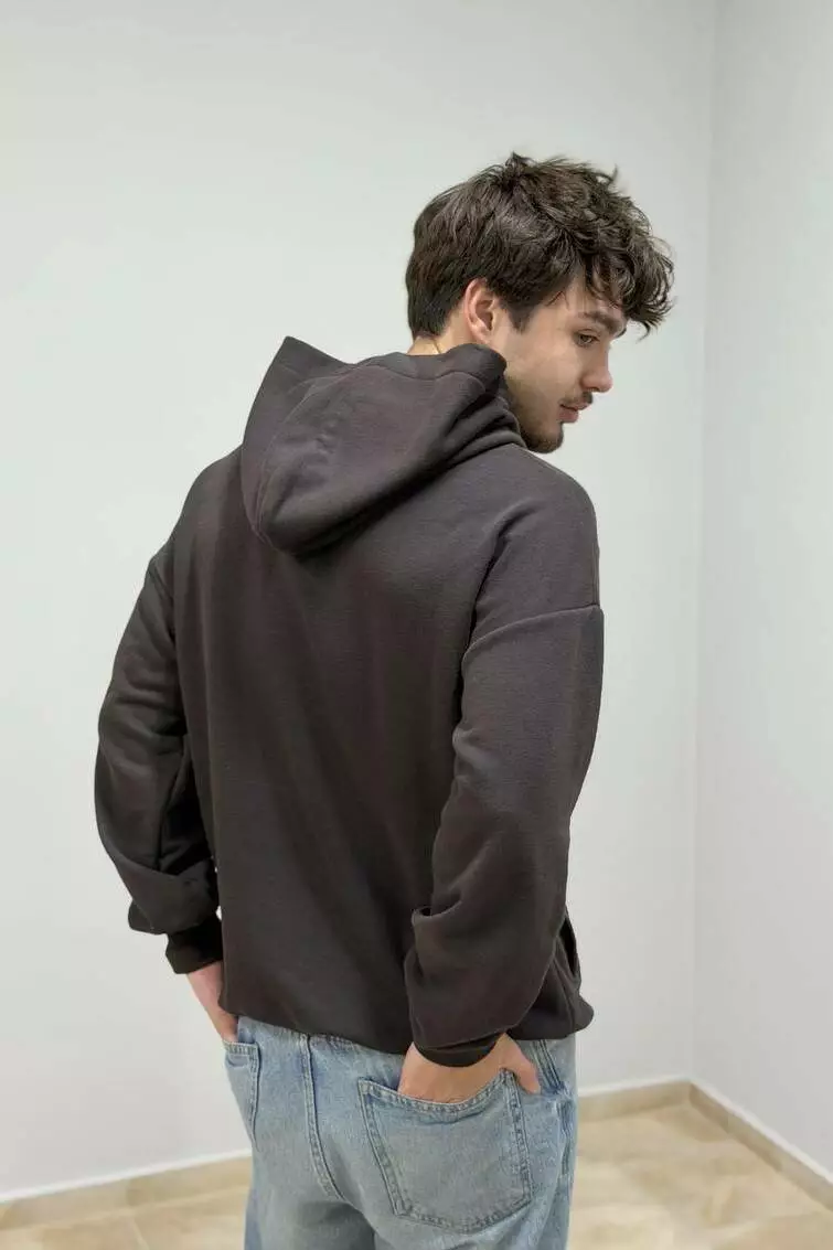 Худі чоловіче з капюшоном із трьохнитки (3-нитка) Щільне базове худі для щоденних образів та активного ритму. Футер трьохнитка забезпечує тепло і тримає форму, а лаконічний крій робить річ універсальною — від streetstyle до casual. Переваги Щільний футер трьохнитка — теплий, зносостійкий, тримає силует. Капюшон на кулісці — регульована посадка та захист від вітру. Кишеня «кенгуру» — зручно для телефону та дрібниць. Еластичні манжети та нижня резинка з рибани — охайна посадка. Міцні шви та акуратні закріпки — довговічність у носінні. Лаконічний дизайн і базові відтінки — легко поєднувати з гардеробом. Склад і матеріал Бавовна/поліестер (точні пропорції та щільність зазначені на ярличку партії). Футер 3-нитка з м’якою виворітною стороною для комфорту та тепла. Деталі крою Анатомічний капюшон, вільна лінія плеча, акуратна горловина, комфортна довжина для свободи рухів. Догляд Прання при 30 °C у делікатному режимі, вивернувши навиворіт. Використовувати м’які засоби, без відбілювачів. Сушити подалі від прямих джерел тепла; машинна сушка — щадний режим. Прасувати на низькій температурі через тканину, оминаючи принти.