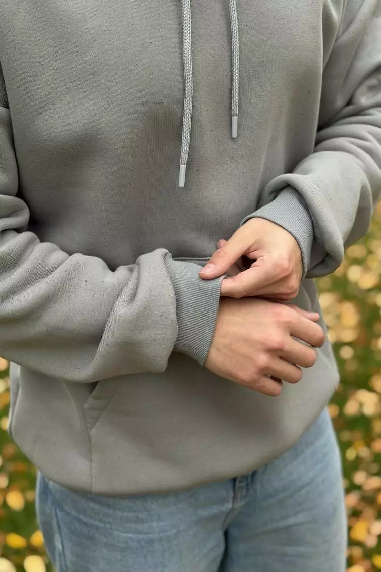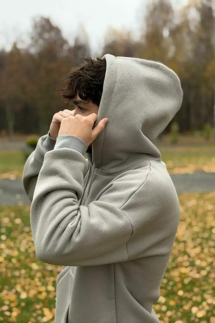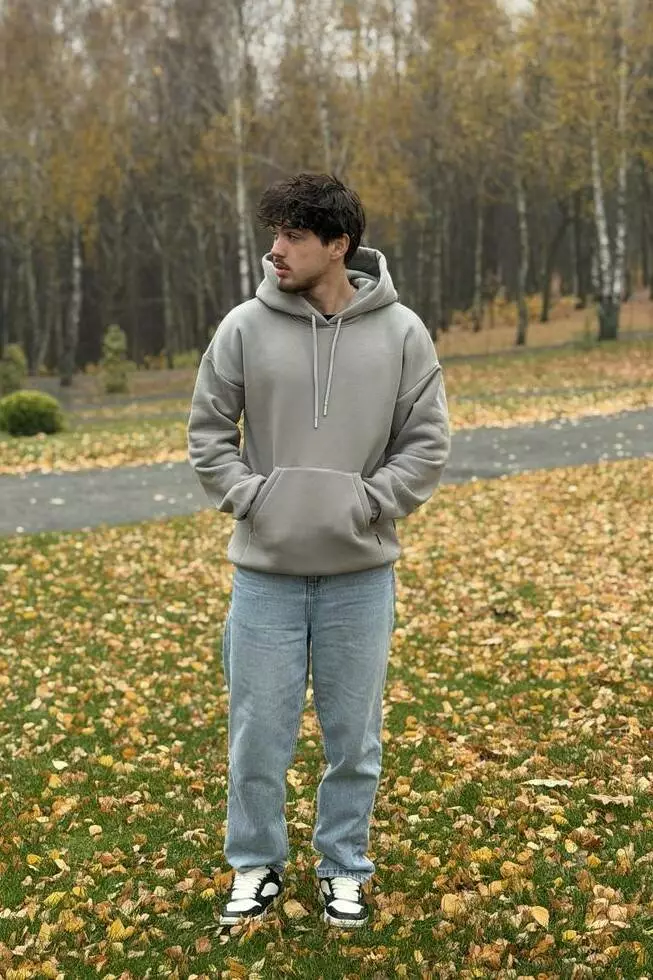 Худі чоловіче з капюшоном і начосом Тепла базова річ на щодень: зручно у місті, у дорозі та на тренуваннях. М’який начос усередині дарує затишок, а щільний трикотаж тримає форму та охайно виглядає після прання. Переваги М’який начос усередині — тепло та комфорт у прохолодну погоду. Щільний трикотаж (футер/фліс) добре тримає форму й не просвічує. Класичний крій Regular Fit — не обмежує рухів. Капюшон на кулісці для захисту від вітру. Кишеня «кенгуру» для телефону та дрібниць. Еластичні манжети та нижня резинка для стабільної посадки. Базові універсальні кольори — легко поєднувати з гардеробом. Склад і матеріал Бавовна/поліестер (точні пропорції та щільність зазначені на ярличку партії). Трикотаж із начосом зсередини для додаткового тепла та м’якості до шкіри. Посадка та розміри Regular Fit, відповідає розміру. Для ефекту oversize радимо брати на розмір більший. Догляд Прання при 30 °C у делікатному режимі, вивернувши навиворіт. Не використовувати відбілювачі та агресивні засоби. Сушити подалі від джерел тепла; машинна сушка — щадний режим. Прасувати на низькій температурі через тканину, оминаючи принти.