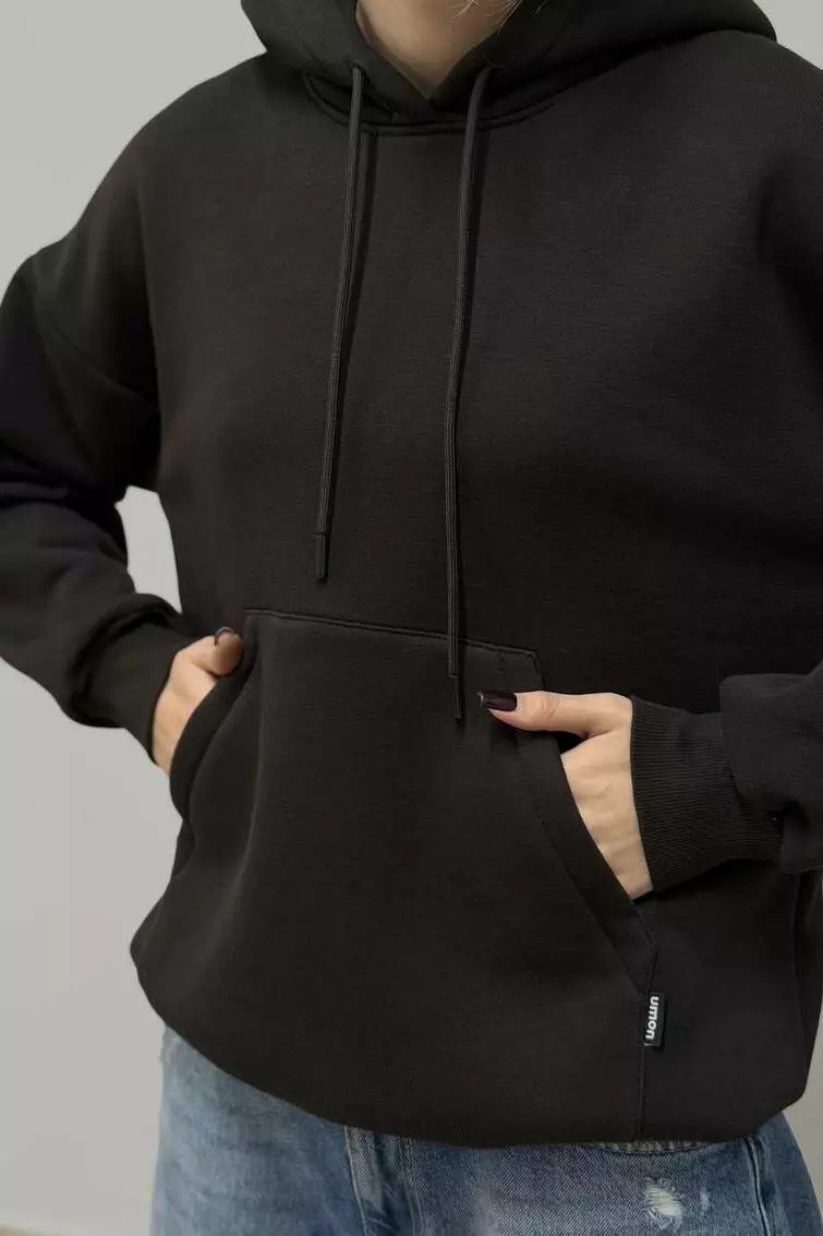 Худі жіноче з капюшоном і начосом Тепле й затишне худі для щоденних образів. М’який начос усередині зігріває, а щільний трикотаж тримає форму та зберігає акуратний вигляд після численних прань. Переваги М’який теплий начос ізсередини — комфорт у прохолодну погоду. Щільний трикотаж (футер/фліс) не просвічує та стійкий до кошлатання. Капюшон на кулісці — захист від вітру й регулювання посадки. Зручна кишеня «кенгуру» для телефону та дрібниць. Еластичні манжети та нижня резинка формують охайний силует. Акуратні закріпки та міцні шви — довговічність у носінні. Базові універсальні кольори — легко поєднувати з гардеробом. Деталі крою Комфортна жіноча посадка, вільна лінія плеча та достатня довжина для тепла й свободи рухів. Склад і матеріал Бавовна/поліестер (точні пропорції та щільність зазначені на ярличку партії). Усередині — м’який начос для додаткового тепла та приємного дотику до шкіри. Догляд Прання при 30 °C у делікатному режимі, вивернувши навиворіт. Не використовувати відбілювачі та агресивні засоби. Сушити подалі від прямих джерел тепла; машинна сушка — щадний режим. Прасувати на низькій температурі через тканину, оминаючи принти.