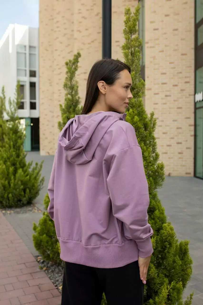 Худі жіноче на замку з капюшоном, 2-нитка Практичне та стильне жіноче худі на замку з капюшоном, виготовлене з трикотажу 2-нитка, стане вашим улюбленим елементом гардеробу для прохолодної погоди. Особливості: • Матеріал: якісний трикотаж 2-нитка, що забезпечує легкість та комфорт під час носіння. • Капюшон: регульований за допомогою шнурків, захищає від вітру та додає стильності. • Застібка: зручна блискавка на всю довжину для легкого використання. • Кишені: дві бокові кишені для зберігання дрібниць або зігрівання рук. • Крій: універсальний фасон з еластичними манжетами та поясом для ідеальної посадки. Це худі легко комбінується з джинсами, спортивними штанами чи легінсами, підходить для активного способу життя, прогулянок чи повсякденного використання.