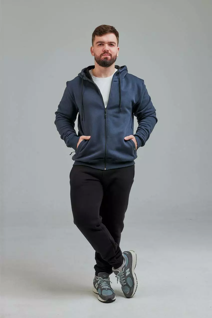 Модель Зріст 177 Охват грудей 102 Охват талії 82 Охват стегон 107 Чоловіча кофта з капюшоном на замку та кишенями Стильна чоловіча кофта з капюшоном — ідеальний вибір для активного способу життя. Практична модель із застібкою на замку та зручними кишенями поєднує комфорт і сучасний дизайн. Капюшон забезпечує додатковий захист у прохолодну погоду. Особливості: Застібка: блискавка по всій довжині для зручності Дизайн: глибокі кишені для необхідних дрібниць Капюшон: регульований, для захисту від вітру Комфорт: універсальний крій для свободи рухів Ця кофта стане незамінною річчю в гардеробі для прогулянок, тренувань або повсякденного носіння!