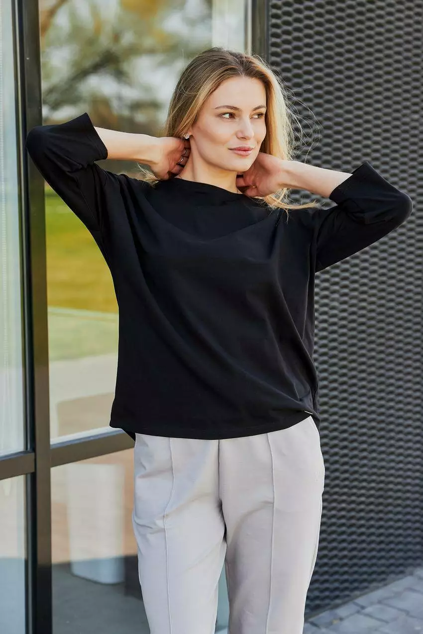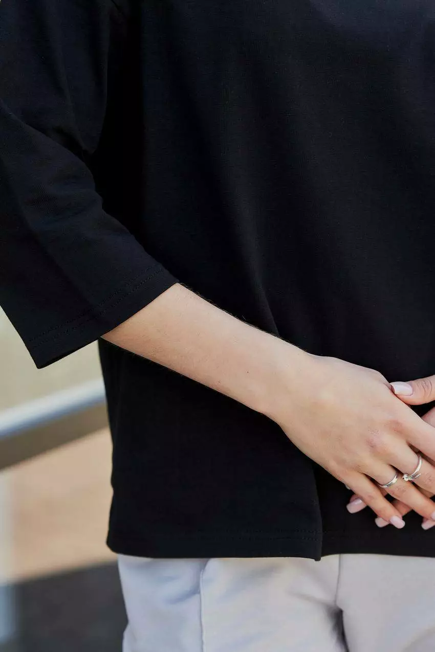 Кофта-лонгслів жіноча з рукавом 3/4 чорна (М181) M