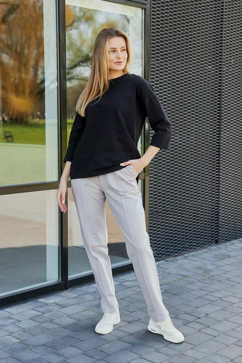 Жіноча кофта-лонгслів з рукавом 3/4 вільного крою — елегантна невимушеність для будь-якого образу Стильна та зручна кофта-лонгслів з рукавом 3/4 — це ідеальне поєднання комфорту, легкості та сучасного дизайну. Вільний крій додає виробу невимушеності, підкреслює жіночність і дозволяє відчувати свободу рухів у будь-якій ситуації. Рукав 3/4 — універсальне рішення для міжсезоння та теплих днів, коли хочеться виглядати стильно і водночас відчувати себе комфортно. Завдяки лаконічному дизайну, кофта легко поєднується з джинсами, брюками, шортами або спідницями, дозволяючи створювати як casual-луки, так і більш елегантні образи. Виготовлена з приємного до тіла матеріалу, що забезпечує дихаючий ефект і комфорт протягом усього дня. Ідеально підходить для прогулянок, офісу, зустрічей із друзями або подорожей. Переваги: Сучасний вільний крій, що підходить для будь-якої фігури Зручний рукав 3/4 — ідеальний для демісезону Легка та універсальна модель для різних випадків Комфортний, дихаючий матеріал Легко комбінується з базовим гардеробом Обирайте кофту-лонгслів з рукавом 3/4 — вашу універсальну річ для стильних і комфортних образів кожного дня!