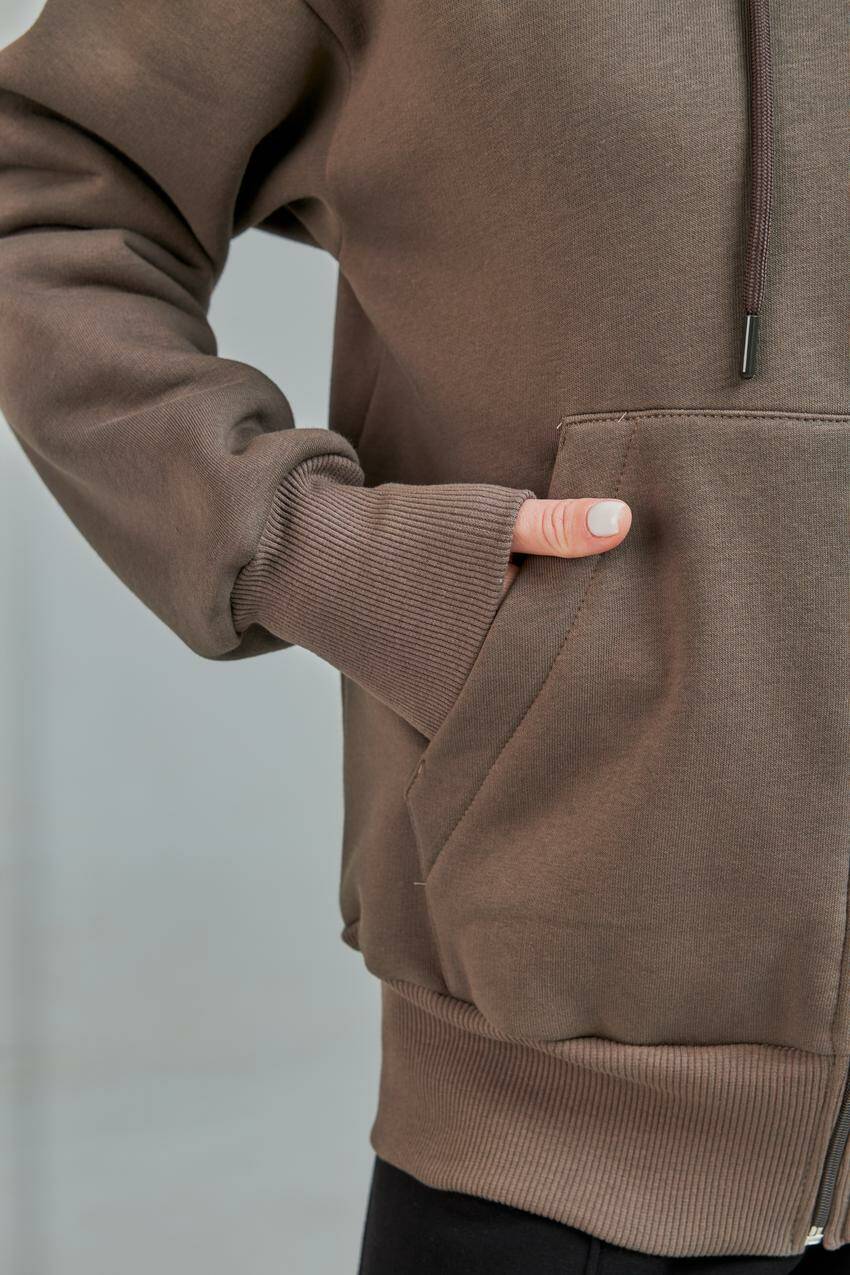 Модель Зріст 170 Охват грудей 86 Охват талії 65 Охват стегон 90 Жіноча кофта з капюшоном на замку та накладними кишенями Практична та стильна жіноча кофта з капюшоном — ідеальний вибір для повсякденного носіння. Завдяки прямому крою та м’якому матеріалу, вона забезпечує комфорт і свободу рухів. Накладні кишені додають функціональності, а капюшон захистить від вітру та негоди. Особливості: Застібка: зручний замок по всій довжині Дизайн: накладні кишені для дрібниць Комфорт: м'який матеріал приємний до тіла Практичність: підходить для прогулянок, подорожей або відпочинку Ця кофта стане улюбленим елементом гардероба для будь-якої пори року!