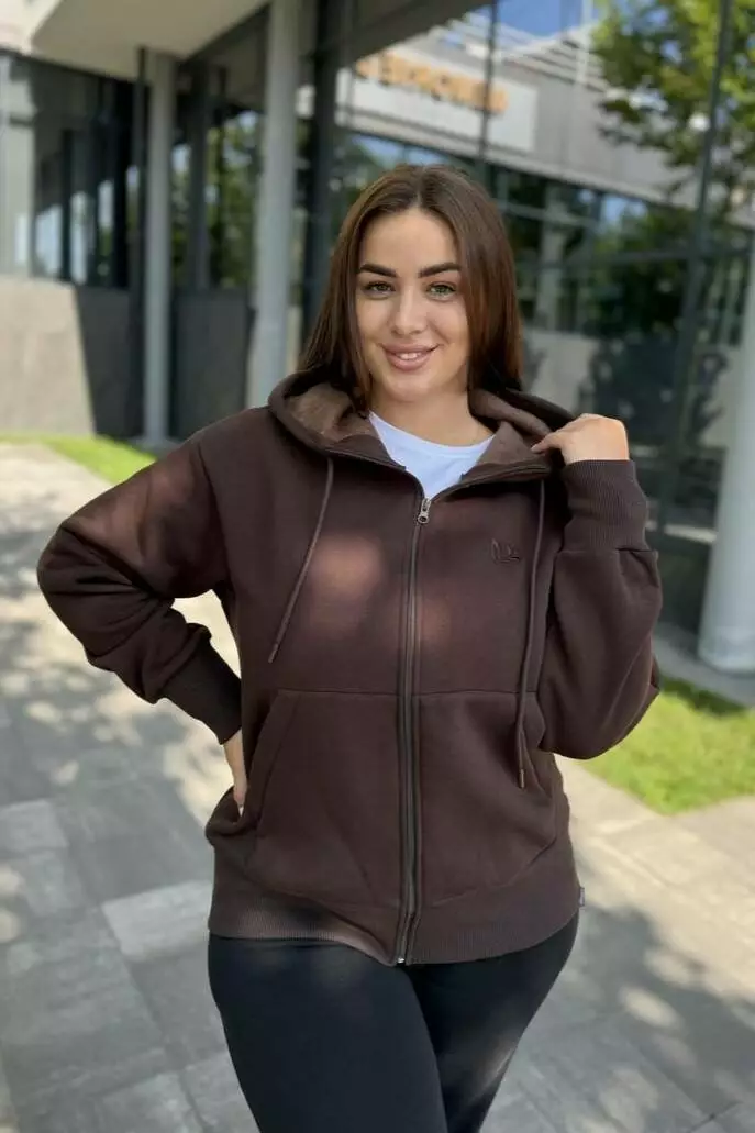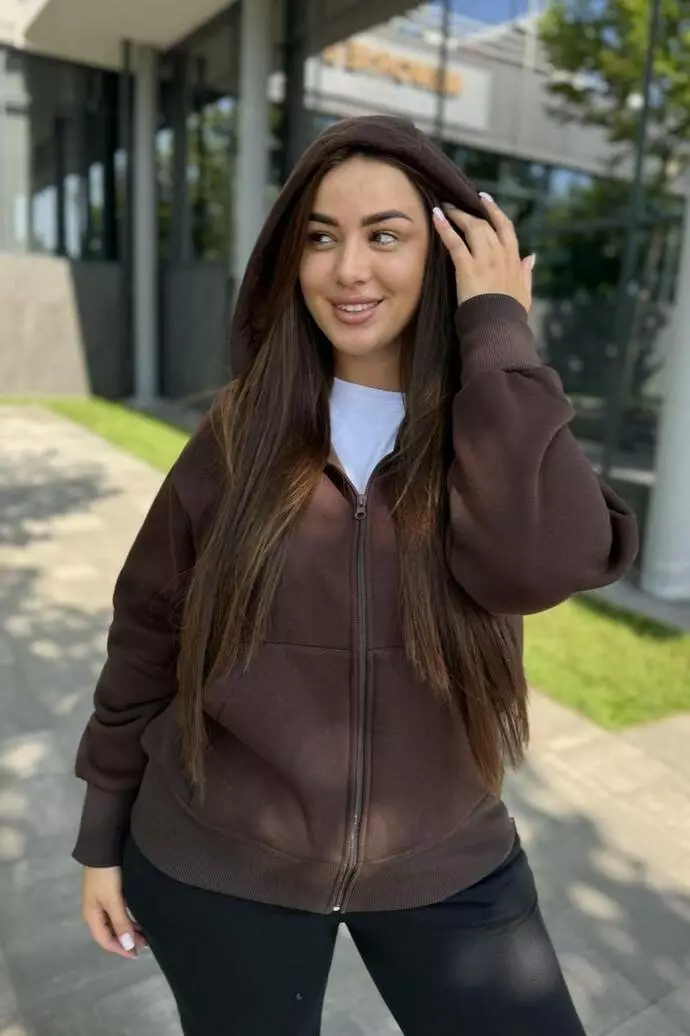 Модель Зріст 167 Охват грудей 105 Охват талії 80 Охват стегон 119 Жіноча кофта з капюшоном на замку та накладними кишенями Практична та стильна жіноча кофта з капюшоном — ідеальний вибір для повсякденного носіння. Завдяки прямому крою та м’якому матеріалу, вона забезпечує комфорт і свободу рухів. Накладні кишені додають функціональності, а капюшон захистить від вітру та негоди. Особливості: Застібка: зручний замок по всій довжині Дизайн: накладні кишені для дрібниць Комфорт: м'який матеріал приємний до тіла Практичність: підходить для прогулянок, подорожей або відпочинку Ця кофта стане улюбленим елементом гардероба для будь-якої пори року!