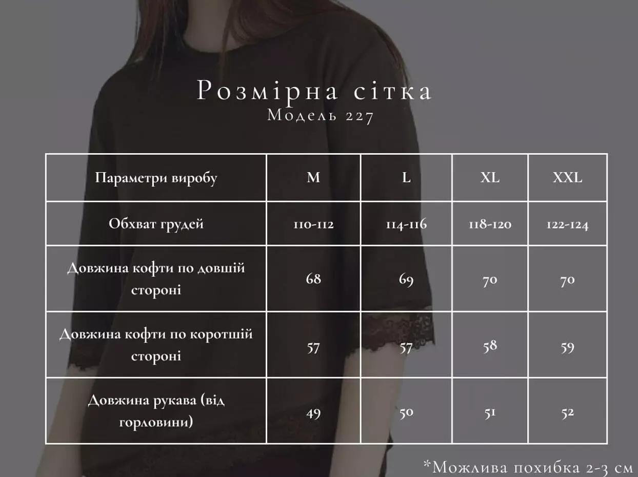 Кофта жіноча з мереживом асиметрія М227, таш M