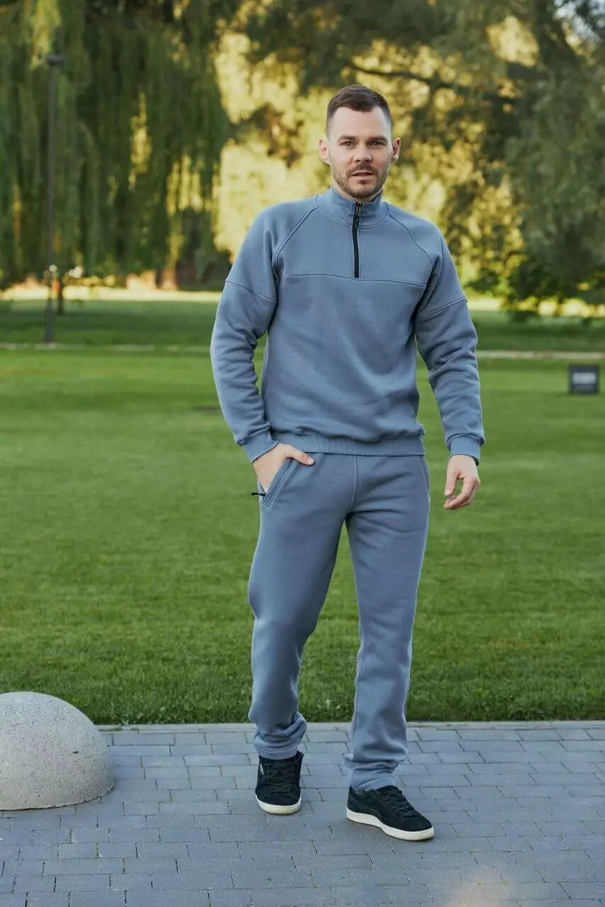 Чоловічий костюм на начосі – затишок і комфорт у холодну погоду Цей чоловічий костюм на начосі поєднує стиль та тепло, створюючи ідеальний вибір для прохолодних днів. Комплект включає прямі штани з кишенями на застібці та кофту з оригінальним кроєм під горло. Манжети на рукавах забезпечують комфортну посадку та захищають від вітру. Начіс на внутрішній стороні тканини дарує додаткове відчуття затишку і тепла. Цей костюм підходить для щоденного носіння, активного відпочинку або прогулянок у прохолодну пору року. Особливості: Матеріал: трикотаж з начосом для додаткового тепла Прямі штани з кишенями на застібці Оригінальний крій кофти під горло Манжети на рукавах для зручності Ідеальний для прохолодної погоди та активного відпочинку