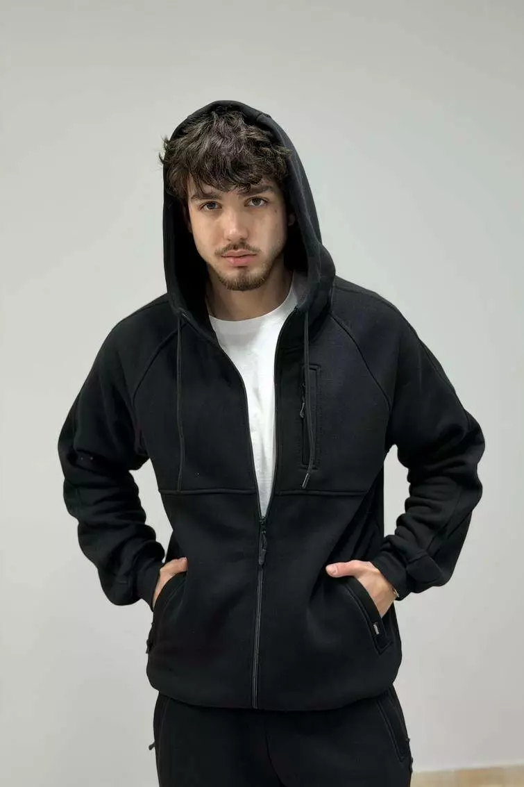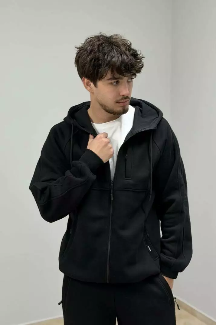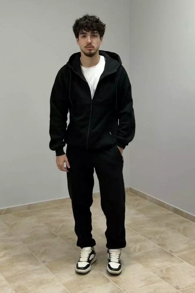 Чоловічий теплий костюм із тринитки з начосом: кофта на замку з капюшоном та штани на манжеті Зручний і практичний чоловічий костюм із тринитки з начосом — чудовий вибір для прохолодної погоди. Тепла щільна тканина забезпечує максимальний комфорт, а сучасний крій робить комплект універсальним для щоденного носіння. Особливості моделі Кофта: на замку, з капюшоном, вільний комфортний крій, практичні кишені. Штани: на еластичному поясі, з манжетом-рубчиком по низу для кращої посадки. Матеріал: тринитка з начосом — щільна, тепла, м’яка та зносостійка тканина. Переваги Підійде для прогулянок, подорожей, спорту та щоденного використання. Манжети забезпечують комфортну посадку та захист від холоду. Стильний, мінімалістичний дизайн добре поєднується з будь-яким взуттям.