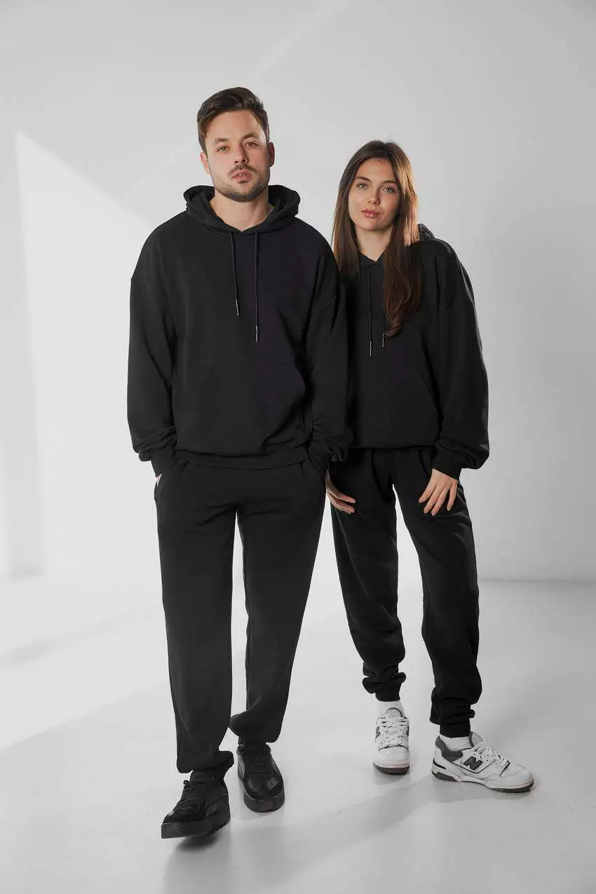 Костюм чоловічий з худі та джогерами 3х-нитка М111.3, чорний M