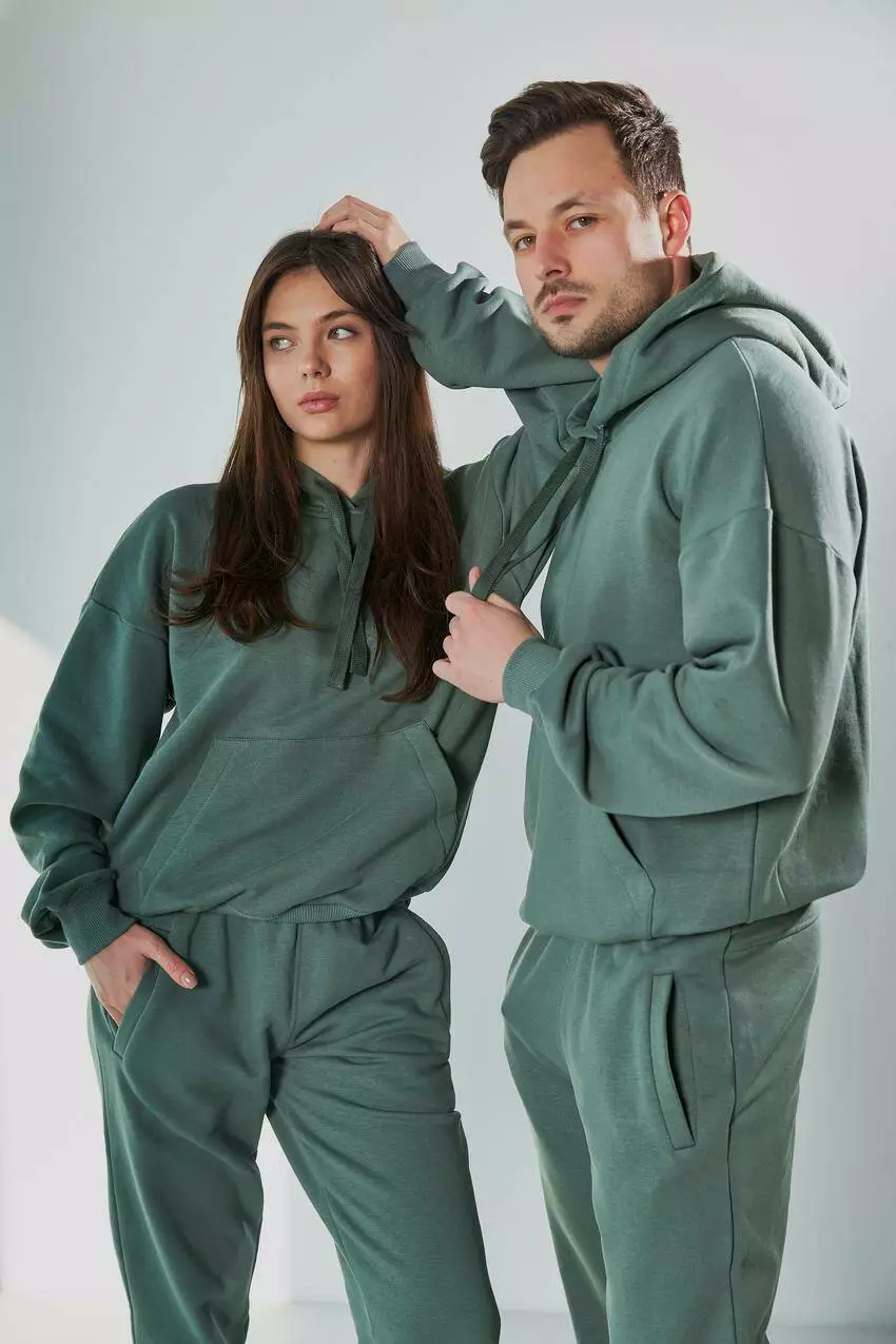 Костюм чоловічий з худі та джогерами 3х-нитка М111.3, темная оливка S