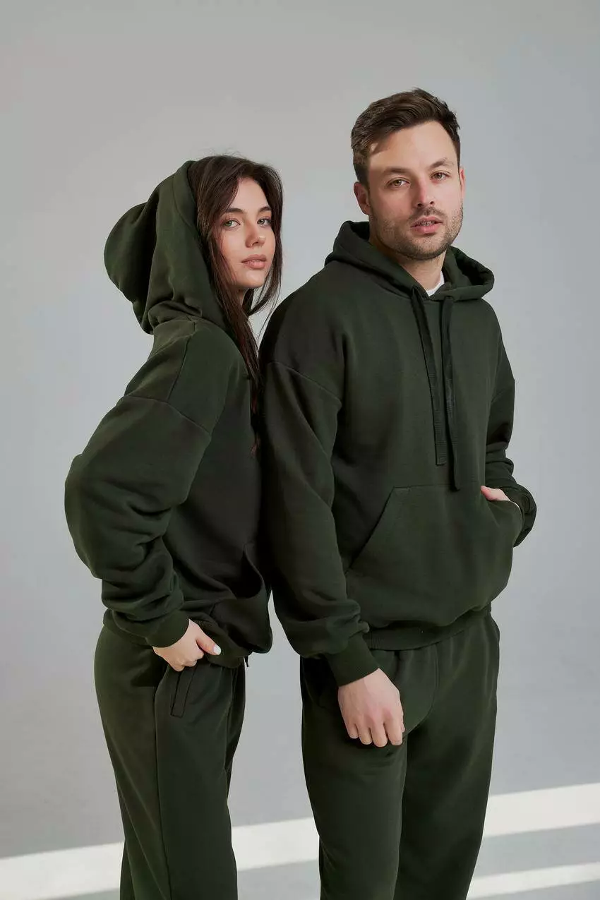 Костюм чоловічий з худі та джогерами з начосом, хакі (М111.4) M