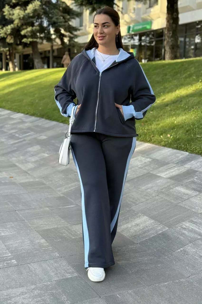 Костюм на замку з капюшоном і начосом Стильний спортивний костюм із м’яким начосом створений для комфорту й тепла у прохолодну погоду. Верх із капюшоном та зручною застібкою-блискавкою забезпечує практичність у щоденному носінні, а завдяки продуманим деталям костюм легко адаптується під будь-який образ. Особливості моделі Кофта на замку з капюшоном — захищає від вітру й холоду, зручна у повсякденному використанні. Затяжки по низу кофти — дозволяють регулювати посадку: носити вільно або підтягнути для створення іншого стилю. Штани з регульованими зав’язками — можна носити прямими чи зібрати на щиколотках. Теплий начіс усередині — дарує затишок і комфорт навіть у прохолодні дні. Переваги Універсальний фасон підходить як для прогулянок, так і для активного відпочинку. Комфортний крій не сковує рухів. Можливість створювати різні стилі завдяки регулюванню низу кофти та штанів.