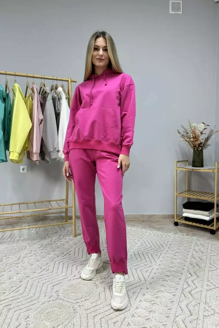 Костюм жіночий із двонитки: худі з капюшоном і кишенею кенгуру та джогери Стильний жіночий костюм з м’якої двонитки — ідеальний вибір для повсякденних образів, відпочинку чи активного дня. Модель поєднує комфорт, практичність і сучасний дизайн. Особливості моделі Худі: вільний крій, капюшон, зручна кишеня-кенгуру, оригінальний замок на спині. Джогери: еластичний пояс на резинці, манжети на штанинах, комфортна посадка. Матеріал: двонитка — м’який трикотаж, приємний до тіла, добре зберігає форму. Переваги Сучасний спортивно-повсякденний стиль. Практичність і комфорт у щоденному носінні. Оригінальна деталь — замок на спині додає унікальності образу.