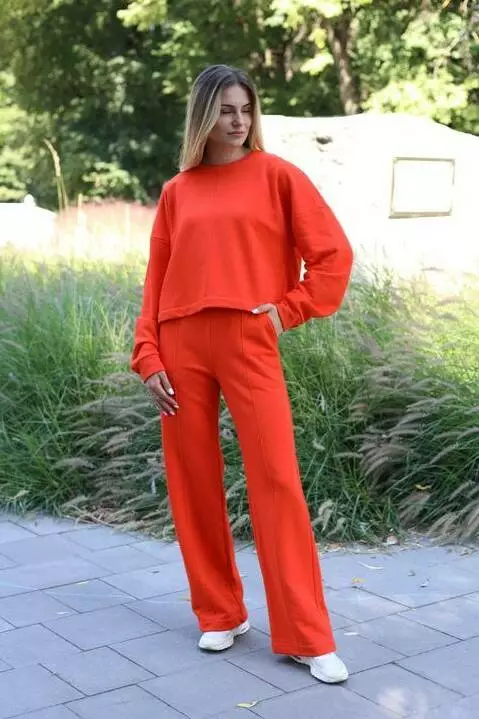 Жіночий теплий костюм із тринитки: кофта без замка та штани палаццо Стильний жіночий костюм із тринитки — ідеальний вибір для тих, хто цінує комфорт і трендовий дизайн. Тепла тканина з начосом забезпечує затишок у прохолодну погоду, а вільний крій додає легкості та свободи рухів. Особливості моделі Кофта: без замка, вільний силует, універсальний базовий дизайн. Штани палаццо: широкий фасон із високим комфортом — виглядають стильно, візуально подовжують ноги та підкреслюють фігуру. Матеріал: 3-нитка (футер із начосом) — щільний, теплий і дуже приємний до тіла. Переваги Трендовий фасон, що пасує до будь-якого стилю. Ідеальний для прогулянок, подорожей та щоденного носіння. Можна носити як комплектом, так і комбінувати з іншим одягом.