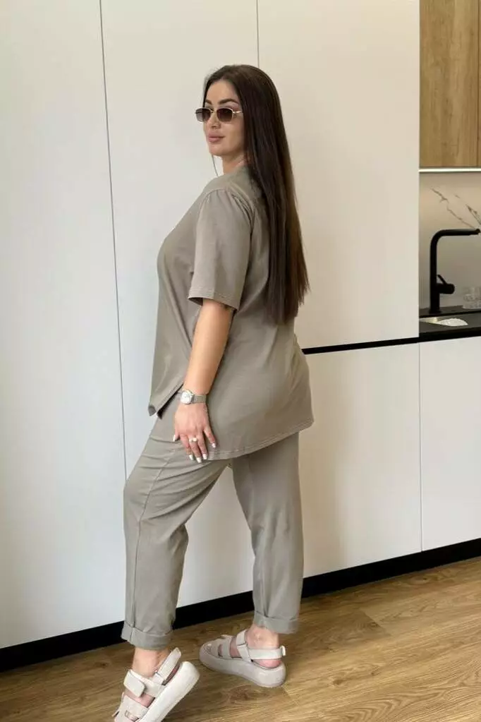 Костюм жіночий літній: штани з кишенями та футболка з розрізами й асиметрією Легкий та зручний жіночий літній костюм, що ідеально поєднує комфорт і сучасний дизайн. Виконаний із дихаючих матеріалів, він забезпечує прохолоду навіть у спекотні дні та підходить для прогулянок, відпочинку чи щоденного використання. Особливості моделі Штани: прямого крою, зручні кишені, комфортна посадка. Футболка: оригінальна асиметрія попереду, стильні розрізи з боків, вільний фасон. Матеріал: літній трикотаж, легкий і приємний до тіла. Переваги Універсальний образ: підходить для міста, відпочинку чи подорожей. Комфорт у спекотні дні завдяки легкій тканині. Стильний акцент: асиметрія та бокові розрізи додають оригінальності.