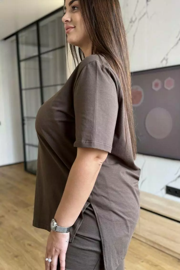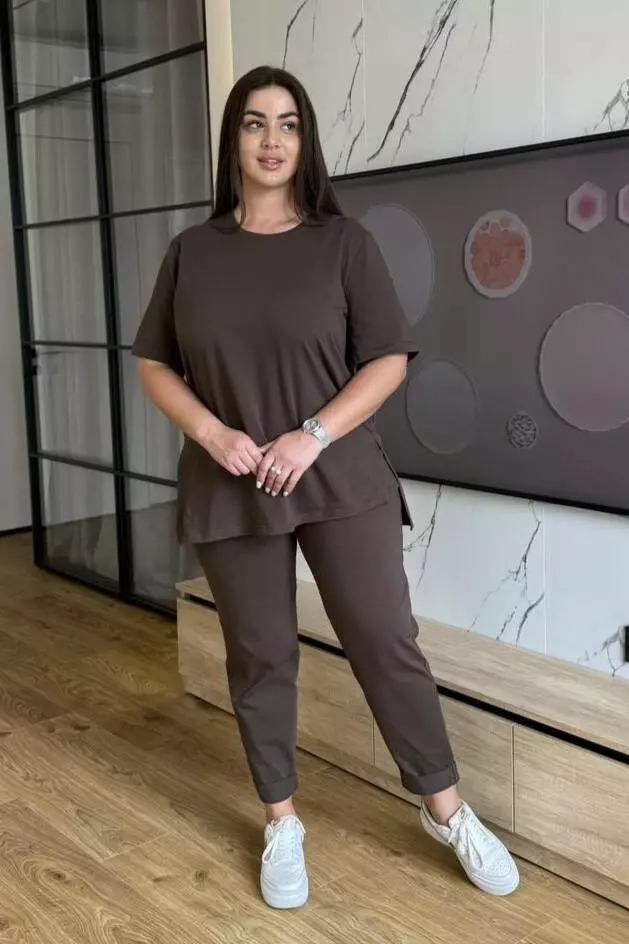 Костюм жіночий літній: штани з кишенями та футболка з розрізами й асиметрією Легкий та зручний жіночий літній костюм, що ідеально поєднує комфорт і сучасний дизайн. Виконаний із дихаючих матеріалів, він забезпечує прохолоду навіть у спекотні дні та підходить для прогулянок, відпочинку чи щоденного використання. Особливості моделі Штани: прямого крою, зручні кишені, комфортна посадка. Футболка: оригінальна асиметрія попереду, стильні розрізи з боків, вільний фасон. Матеріал: літній трикотаж, легкий і приємний до тіла. Переваги Універсальний образ: підходить для міста, відпочинку чи подорожей. Комфорт у спекотні дні завдяки легкій тканині. Стильний акцент: асиметрія та бокові розрізи додають оригінальності.