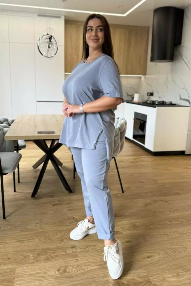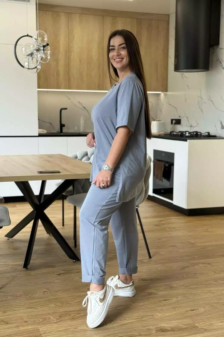 Костюм жіночий літній: штани з кишенями та футболка з розрізами й асиметрією Легкий та зручний жіночий літній костюм, що ідеально поєднує комфорт і сучасний дизайн. Виконаний із дихаючих матеріалів, він забезпечує прохолоду навіть у спекотні дні та підходить для прогулянок, відпочинку чи щоденного використання. Особливості моделі Штани: прямого крою, зручні кишені, комфортна посадка. Футболка: оригінальна асиметрія попереду, стильні розрізи з боків, вільний фасон. Матеріал: літній трикотаж, легкий і приємний до тіла. Переваги Універсальний образ: підходить для міста, відпочинку чи подорожей. Комфорт у спекотні дні завдяки легкій тканині. Стильний акцент: асиметрія та бокові розрізи додають оригінальності.