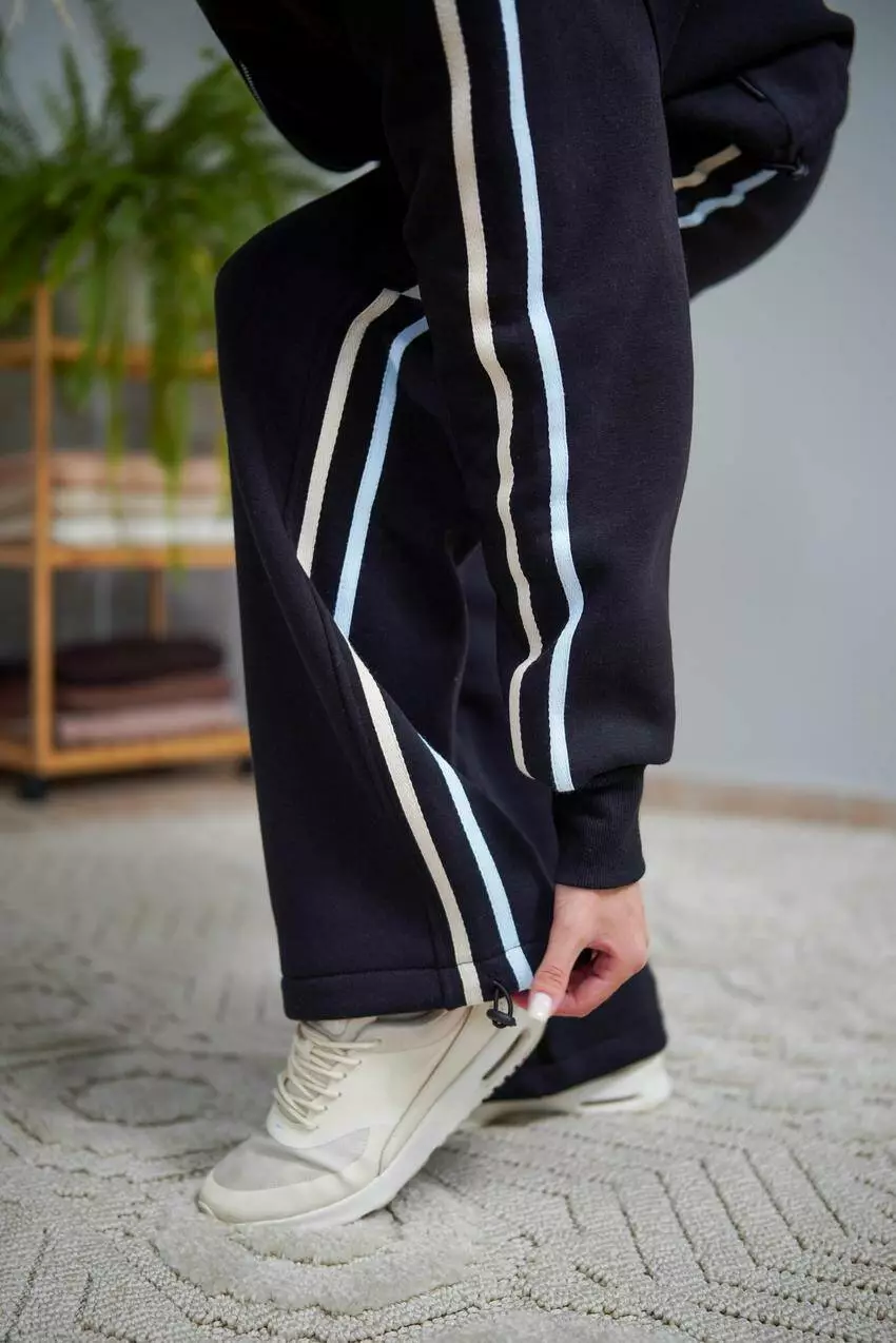 Жіночий теплий костюм на замку з начосом: худі з капюшоном та прямі штани із затяжками Стильний і комфортний жіночий костюм із начосом — ідеальний вибір для прохолодної погоди. Зручний крій, тепла тканина та функціональні деталі забезпечують максимальний комфорт у щоденному використанні. Особливості моделі Худі: на замку, з капюшоном та затяжками по низу для регулювання об’єму; практичні кишені. Штани: прямого крою, з затяжками по низу штанини для зручної посадки та захисту від вітру. Матеріал: футер із начосом (3-нитка) — щільний, м’який і дуже теплий. Переваги Тепло та затишок у холодну пору року. Сучасний дизайн і універсальний фасон. Регульований низ для кращої посадки та комфорту.