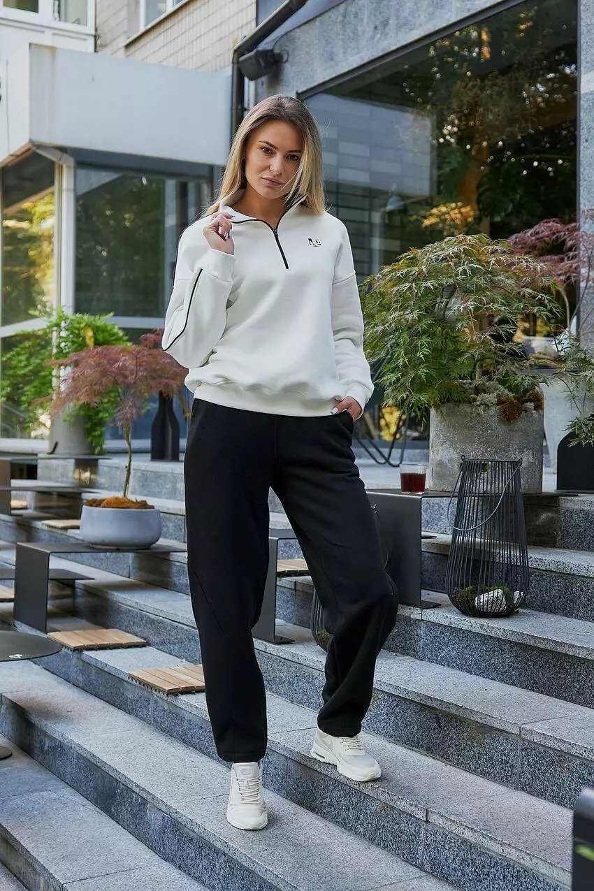 Костюм жіночий з начосом крем+чорний (М196.4) M