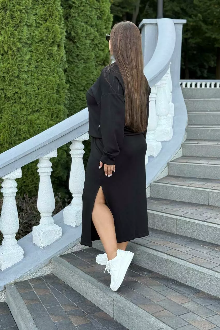 Костюм жіночий зі спідницею з дайвінгу: кофта з горловиною на замку, максі-спідниця з розрізами Стильний жіночий костюм, який поєднує комфорт та елегантність. Виконаний із сучасного матеріалу дайвінг, що добре тягнеться, не просвічує та тримає форму. Комплект ідеально підходить як для щоденних образів, так і для особливих виходів. Особливості моделі Кофта: з високою горловиною та замком-блискавкою, акуратний крій, зручна у носінні. Спідниця: довжина максі, прямий фасон із розрізами з боків для зручності руху та стильного вигляду. Матеріал: дайвінг — щільний трикотаж із гладкою текстурою, що забезпечує ідеальну посадку по фігурі. Переваги Сучасний дизайн: лаконічна форма та трендові деталі. Практичність: тканина не мнеться, швидко сохне, легко доглядається. Комфорт: еластичний матеріал забезпечує свободу рухів.