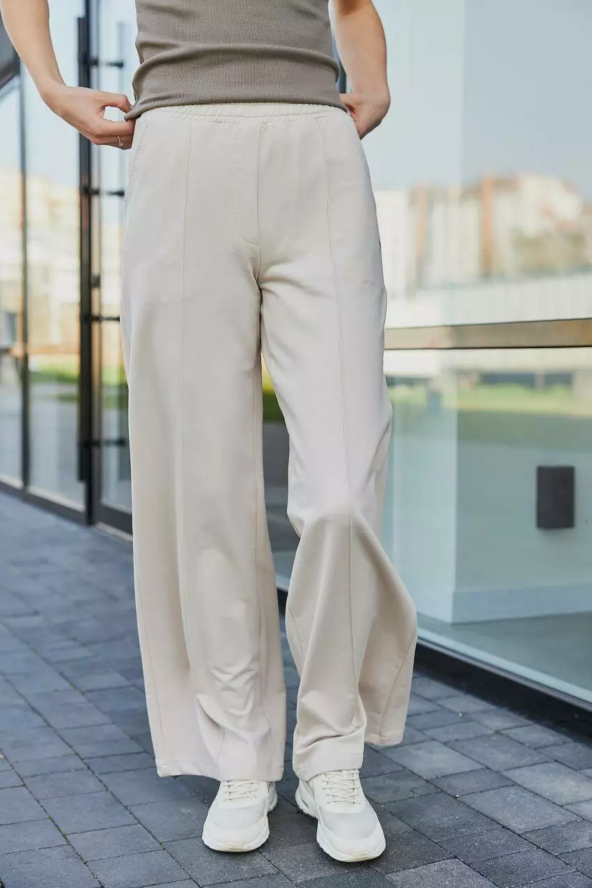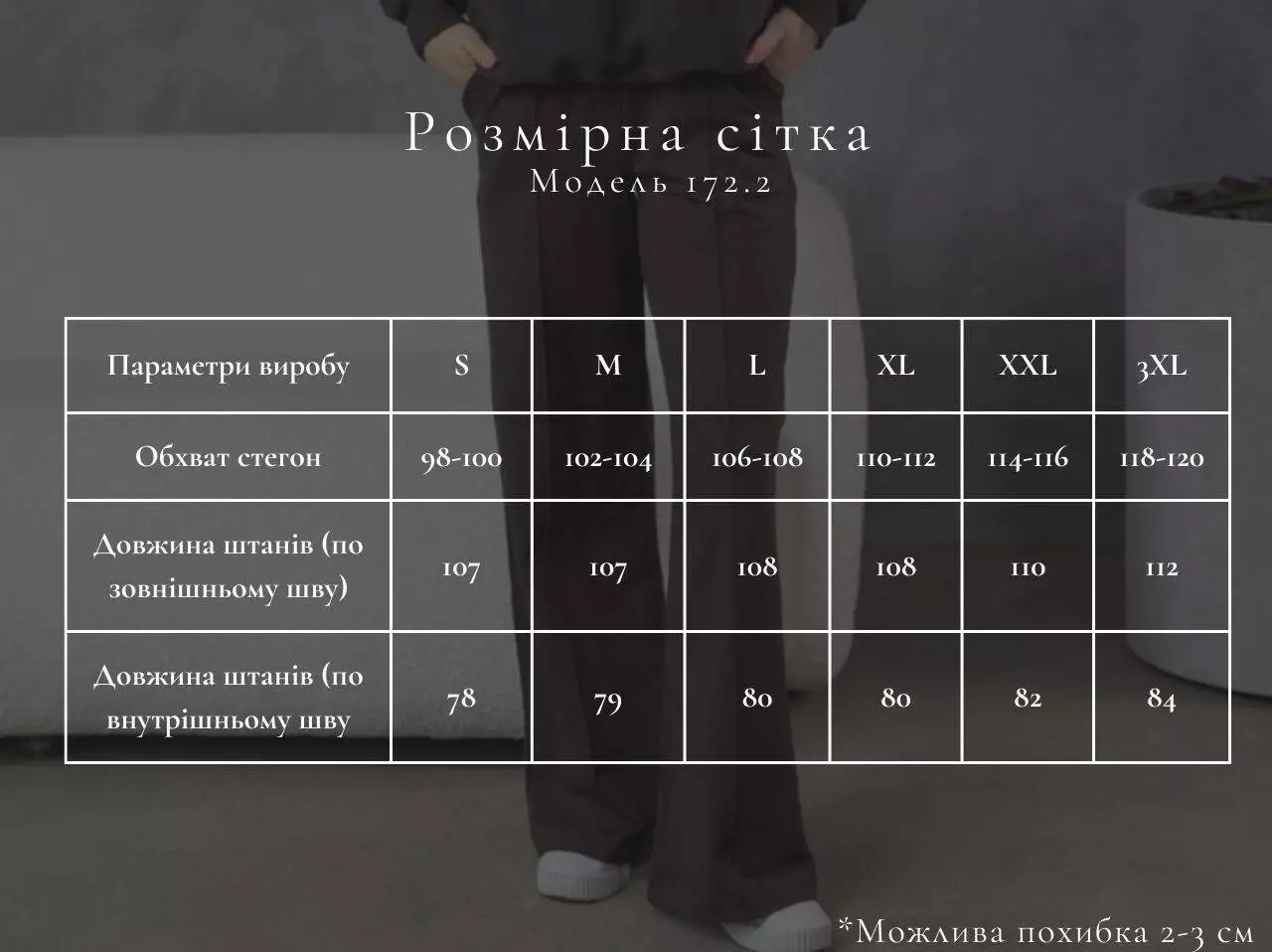 Жіночі штани палаццо з двонитки — легкість, свобода та стиль у кожному русі Стильні широкі штани фасону палаццо — це трендова база для комфортних та жіночних образів. Виготовлені з приємної до тіла двонитки, вони забезпечують м’якість, дихаючий ефект та свободу рухів, ідеально підходять для весни, осені або прохолодного літа. Штани мають прямий крій із розкльошенням від стегна, що візуально подовжує ноги та додає силуету витонченості. Еластичний пояс із зав’язками легко адаптується до фігури, забезпечуючи зручну посадку без сковування. Палаццо чудово поєднуються з футболками, світшотами, кроп-топами чи жакетами — як для міського casual, так і для розслабленого athleisure. Переваги: М’яка, дихаюча двонитка — комфорт у русі Силует палаццо — візуально подовжує ноги Еластичний пояс — зручна посадка Універсальний стиль — легко комбінується з будь-яким верхом Підходить для прогулянок, роботи вдома, подорожей або повсякденного носіння Жіночі палаццо з двонитки — це свобода, що виглядає стильно!