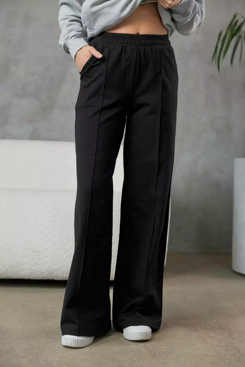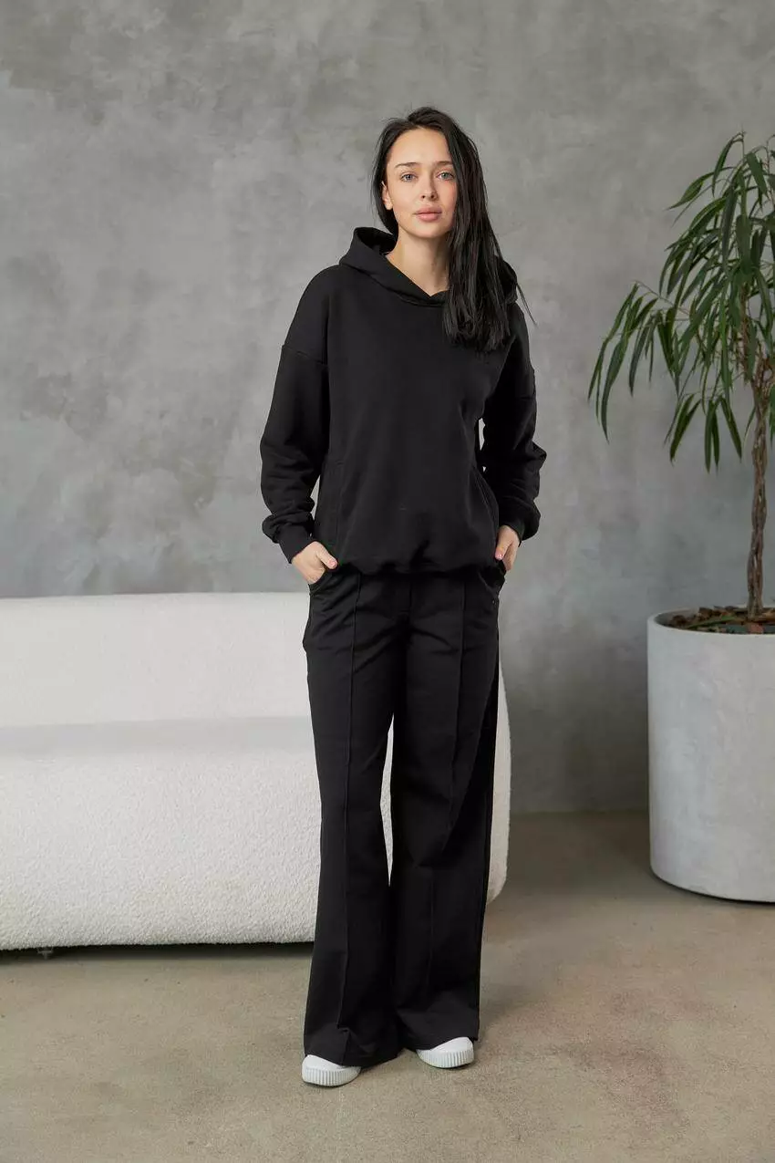 Жіночі штани палаццо з двонитки — легкість, свобода та стиль у кожному русі Стильні широкі штани фасону палаццо — це трендова база для комфортних та жіночних образів. Виготовлені з приємної до тіла двонитки, вони забезпечують м’якість, дихаючий ефект та свободу рухів, ідеально підходять для весни, осені або прохолодного літа. Штани мають прямий крій із розкльошенням від стегна, що візуально подовжує ноги та додає силуету витонченості. Еластичний пояс із зав’язками легко адаптується до фігури, забезпечуючи зручну посадку без сковування. Палаццо чудово поєднуються з футболками, світшотами, кроп-топами чи жакетами — як для міського casual, так і для розслабленого athleisure. Переваги: М’яка, дихаюча двонитка — комфорт у русі Силует палаццо — візуально подовжує ноги Еластичний пояс — зручна посадка Універсальний стиль — легко комбінується з будь-яким верхом Підходить для прогулянок, роботи вдома, подорожей або повсякденного носіння Жіночі палаццо з двонитки — це свобода, що виглядає стильно!