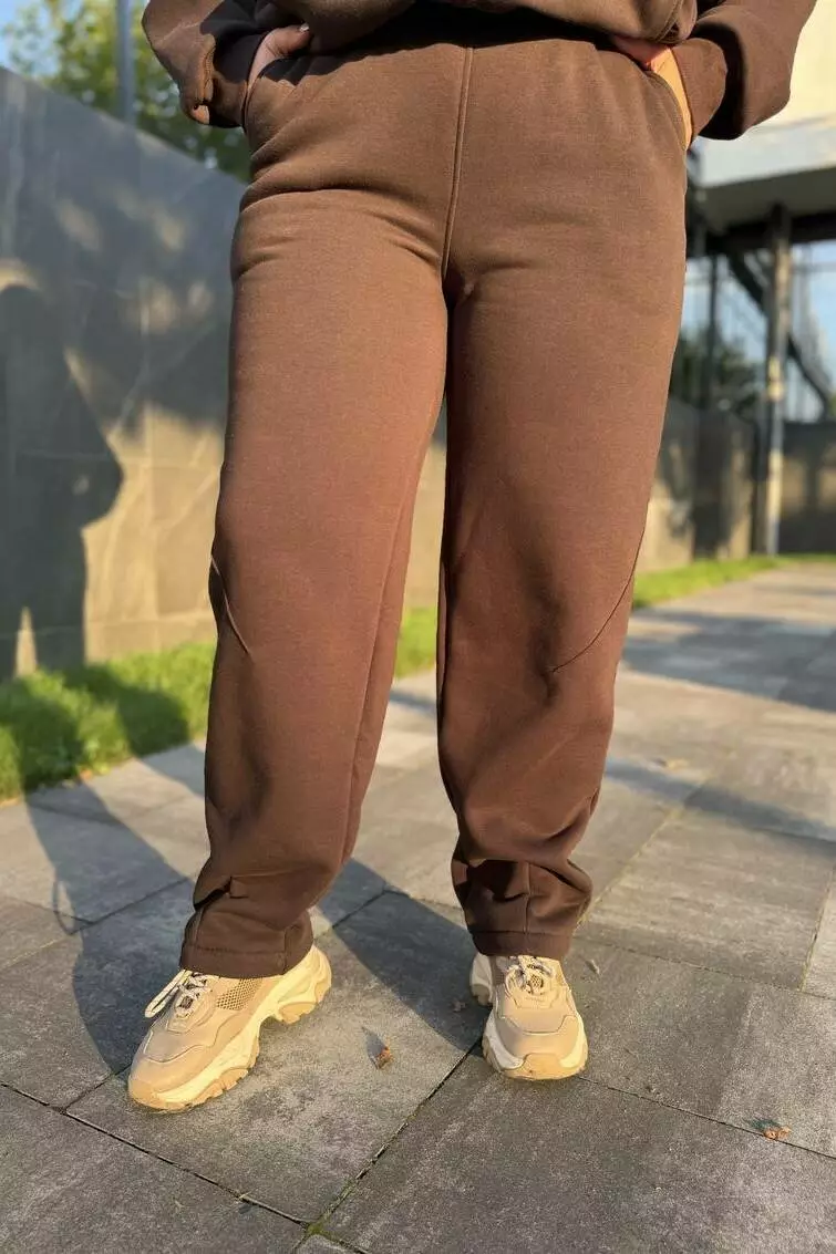Жіночі штани з начосом з кишенями спереду та ззаду Теплі та зручні жіночі штани з начосом стануть улюбленою річчю у прохолодну погоду. М’яка внутрішня сторона забезпечує комфорт і зігріває, а універсальний дизайн легко поєднується з худі, світшотами чи повсякденними кофтами. Особливості моделі Кишені: функціональні — спереду та ззаду для зручності щоденного носіння. Посадка: комфортна, на еластичному поясі. Матеріал: теплий трикотаж з начосом — м’який до тіла, приємний та зносостійкий. Фасон: універсальний — підходить для прогулянок, дому, подорожей і активного відпочинку. Переваги Зігрівають у прохолодні дні. Не сковують рухи завдяки еластичності тканини. Лаконічний дизайн для будь-якого стилю.