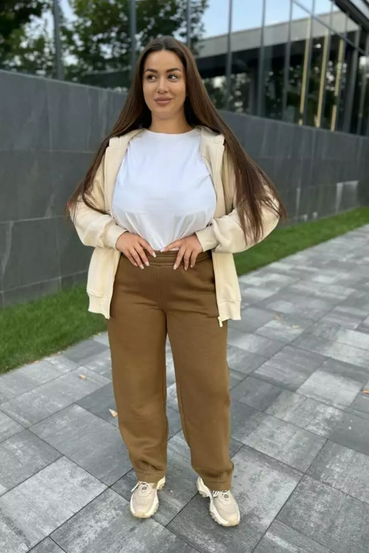 Жіночі штани з начосом з кишенями спереду та ззаду Теплі та зручні жіночі штани з начосом стануть улюбленою річчю у прохолодну погоду. М’яка внутрішня сторона забезпечує комфорт і зігріває, а універсальний дизайн легко поєднується з худі, світшотами чи повсякденними кофтами. Особливості моделі Кишені: функціональні — спереду та ззаду для зручності щоденного носіння. Посадка: комфортна, на еластичному поясі. Матеріал: теплий трикотаж з начосом — м’який до тіла, приємний та зносостійкий. Фасон: універсальний — підходить для прогулянок, дому, подорожей і активного відпочинку. Переваги Зігрівають у прохолодні дні. Не сковують рухи завдяки еластичності тканини. Лаконічний дизайн для будь-якого стилю.