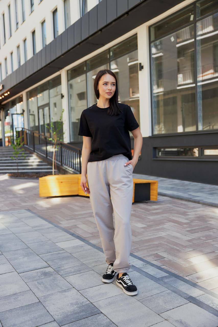 Жіночі спортивні штани-джогери з трьохнитки – міцність і комфорт у прохолодну погоду Ці джогери з трьохнитки – ідеальний вибір для жінок, які шукають поєднання зручності та міцності. Щільний трикотаж забезпечує тепло і комфорт у прохолодну погоду, роблячи ці штани незамінними для прогулянок, занять спортом або відпочинку вдома. Еластичний пояс і манжети додають зручності, а стильний крій підкреслює ваш модний образ. Джогери легко поєднуються з різними футболками та світшотами, створюючи комфортні образи для повсякденного носіння. Особливості: Матеріал: щільний трикотаж трьохнитка Еластичний пояс і манжети Ідеальні для прохолодної погоди Підходять для спорту, прогулянок та повсякденного використання