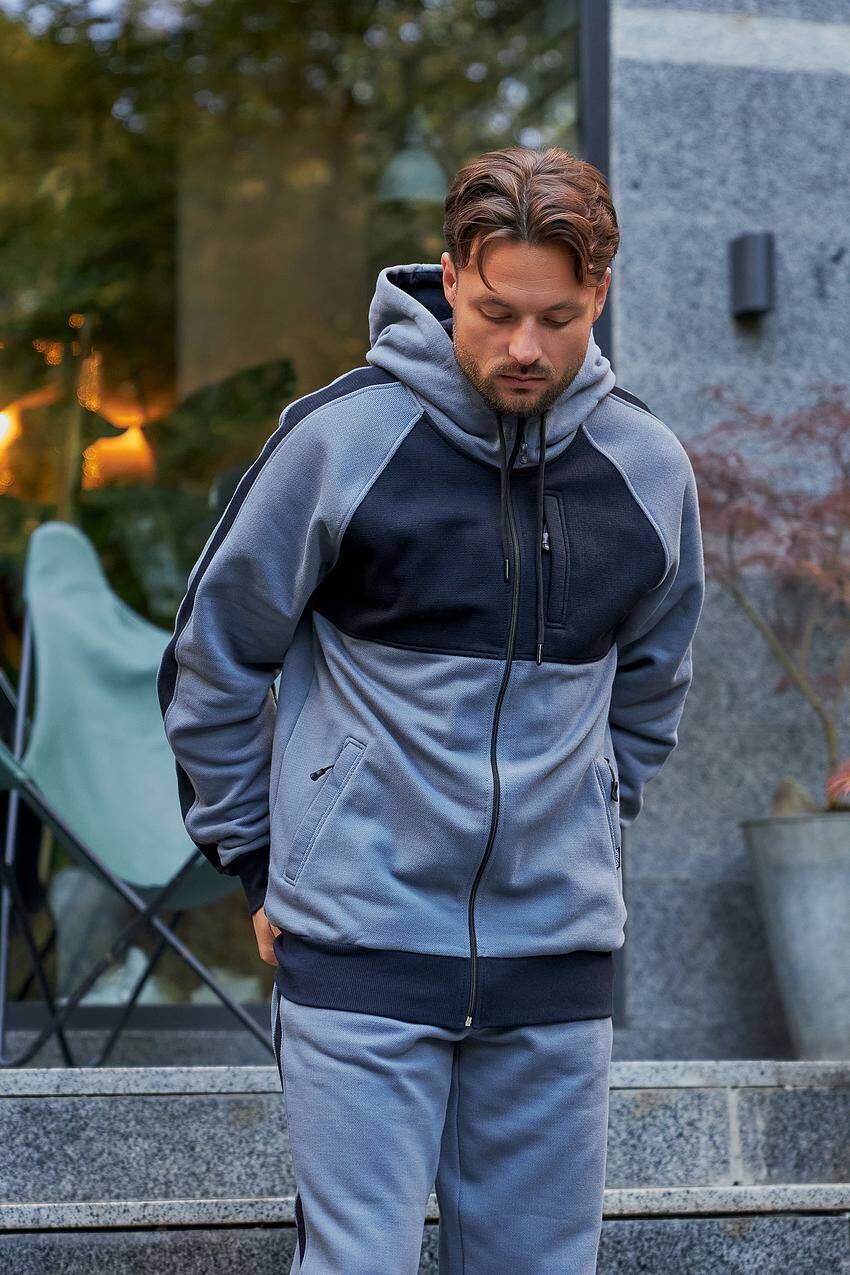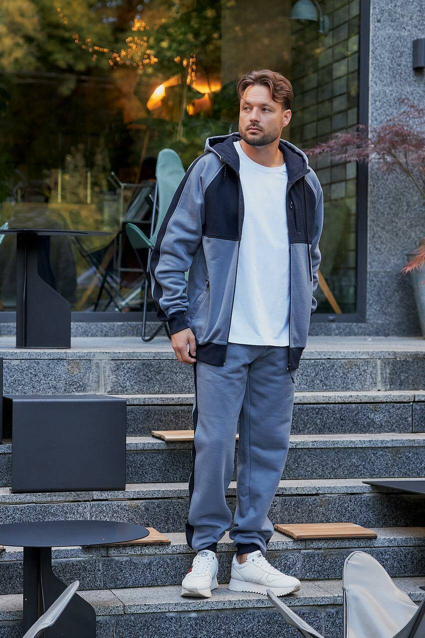 Спортивний чоловічий костюм лакоста сірий + темно-синій (М83.4) XL