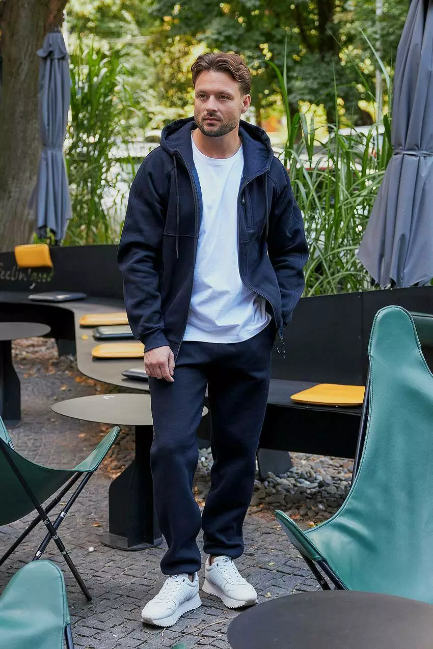 Спортивний чоловічий костюм з лакости: худі на блискавці та штани-джогери Стильний і зручний комплект для тренувань і повсякденних образів. Костюм виготовлений з матеріалу лакоста (трикотаж типу піке), що приємний до тіла, добре «дихає» та довго зберігає форму. Комплектація Худі на блискавці з капюшоном — комфортно сідає, додає захисту у прохолодну погоду. Штани-джогери — сучасний крій з манжетами на щиколотках для акуратного силуету. Особливості та переваги Матеріал лакоста: щільний, зносостійкий, повітропроникний. Комфорт у русі: м’який трикотаж не сковує під час активностей. Універсальний дизайн: підходить для спорту, прогулянок та подорожей. Легкий догляд: тканина не кошлатиться та тримає колір. Матеріал та догляд Склад: лакоста (трикотаж типу піке). Догляд: делікатне прання при 30 °C, не використовувати відбілювачі, сушити у розправленому вигляді, прасувати з виворітної сторони.