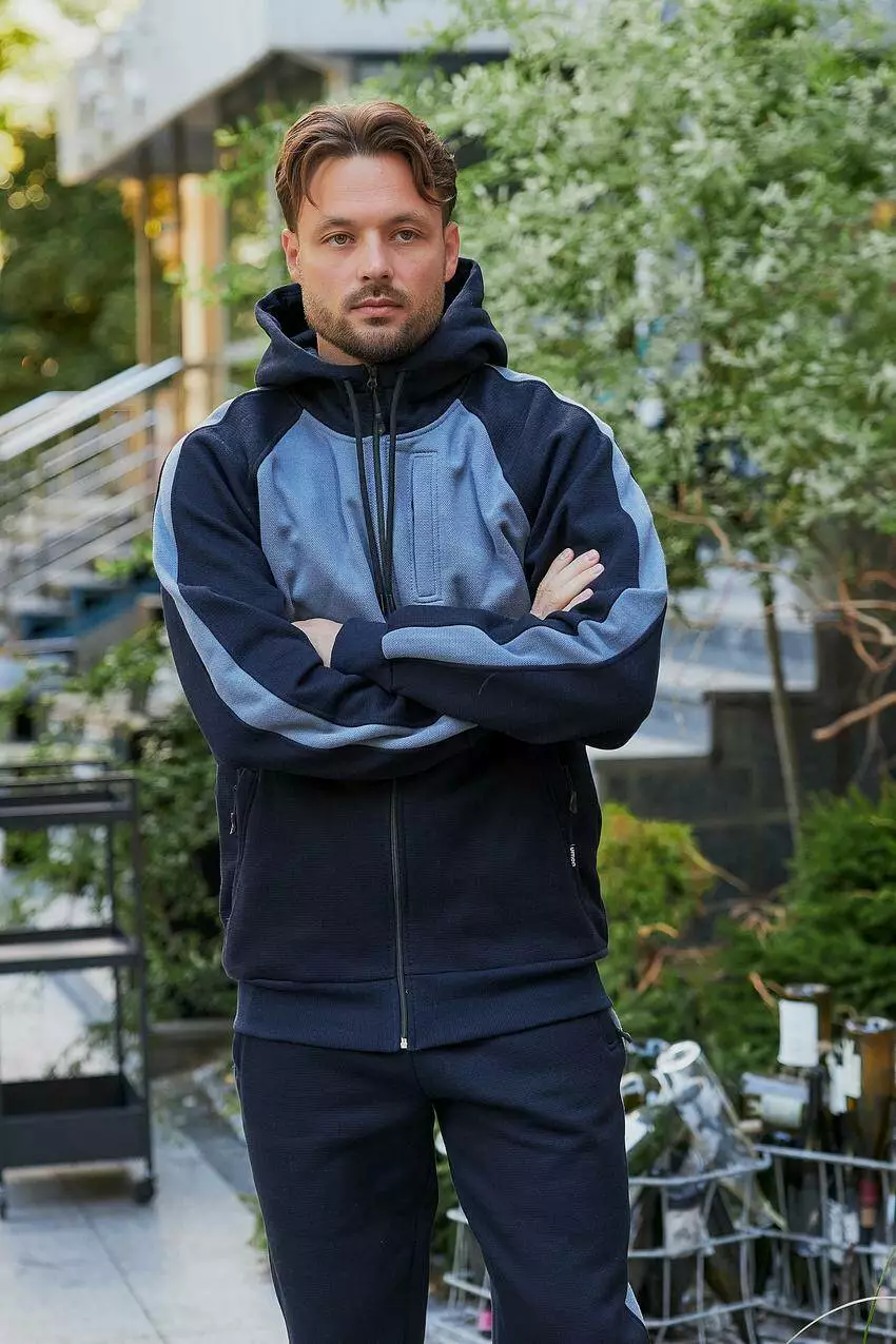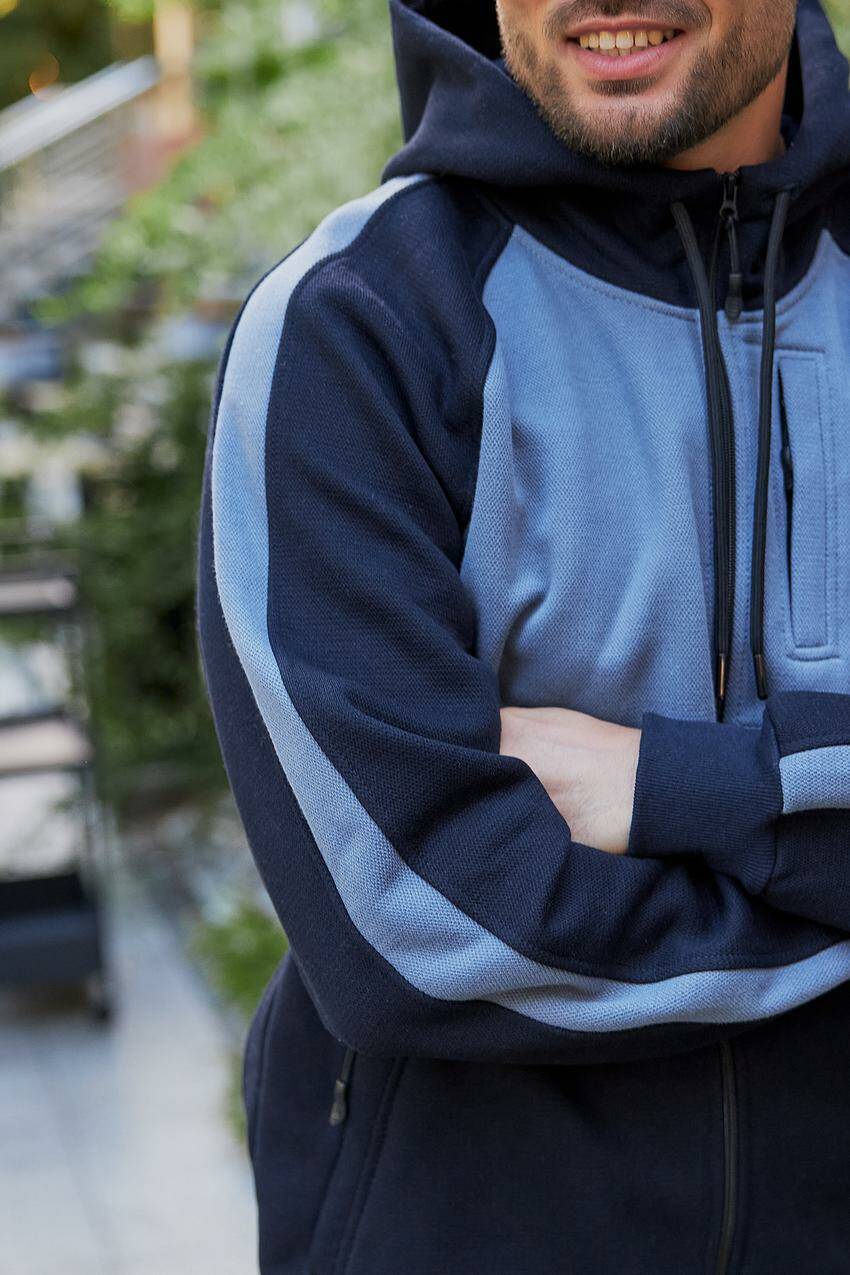 Спортивний чоловічий костюм лакоста темно-синій з сірим (М83.4) M