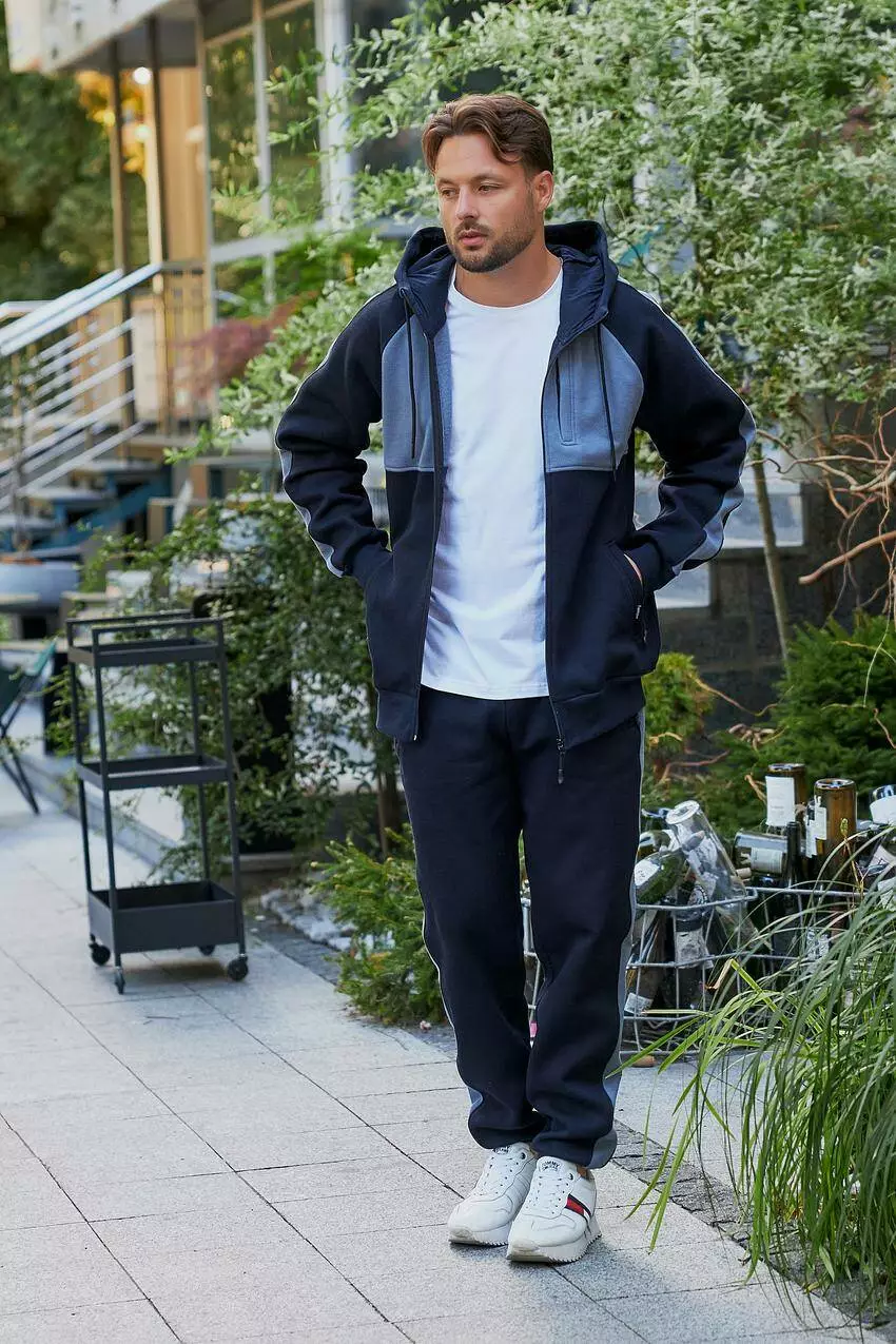Спортивний чоловічий костюм лакоста темно-синій з сірим (М83.4) XXL