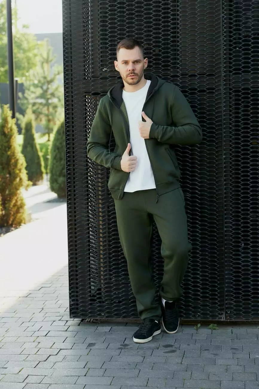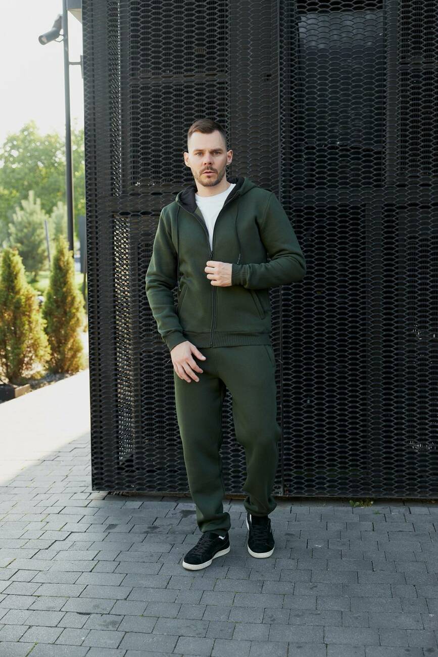 Спортивний костюм чоловічий на замку з начосом хакі (М79.4) XXL