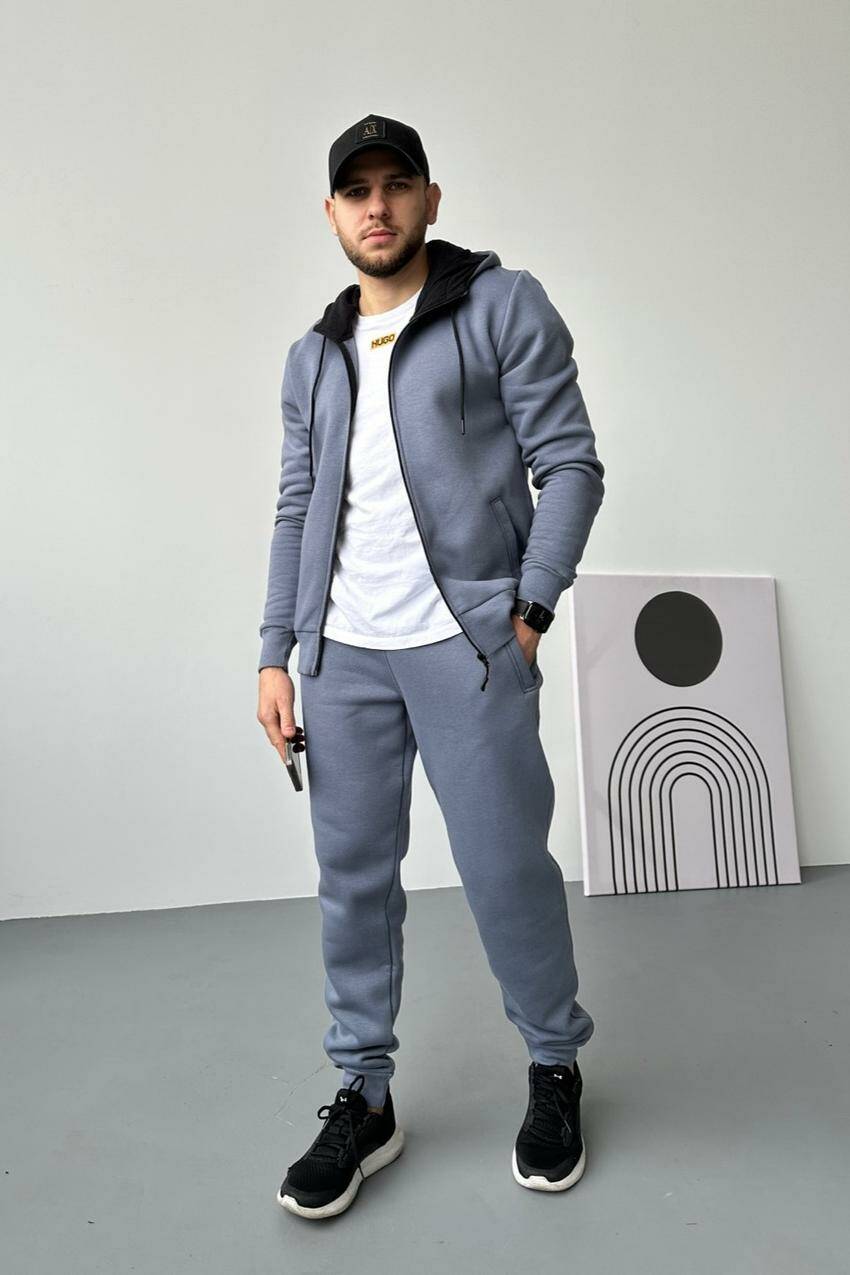 Чоловічий спортивний костюм з начосом — тепло, зручність і стиль на кожен день Теплий чоловічий костюм із кофтою на блискавці та джогерами — ідеальний варіант для прохолодної пори року. Завдяки м’якому начосу зсередини він добре утримує тепло, а зручний крій не обмежує рухів. Такий комплект чудово підходить для прогулянок, активного відпочинку, поїздок або щоденного носіння вдома й на вулиці. Матеріал: Тринитка з начосом — щільний, теплий трикотаж, м’який до тіла; Не деформується, не кошлатиться, зберігає форму після прання. Кофта: Застібка-блискавка по всій довжині — зручно регулювати температуру; Капюшон з підкладкою і шнурком — додатковий захист від холоду; Манжети на рукавах та по низу — щільна посадка без втрати комфорту; Бічні кишені для зручності. Штани: Крій джогерів — зручні манжети знизу, комфортна посадка; Пояс на резинці зі шнурком — легко регулюється по фігурі; Бічні кишені — для телефона, ключів або інших дрібниць. Ідеально підходить для: Прогулянок, подорожей, активного відпочинку; Повсякденного носіння вдома або на вихідні; Холодного сезону — осінь, зима, весна.