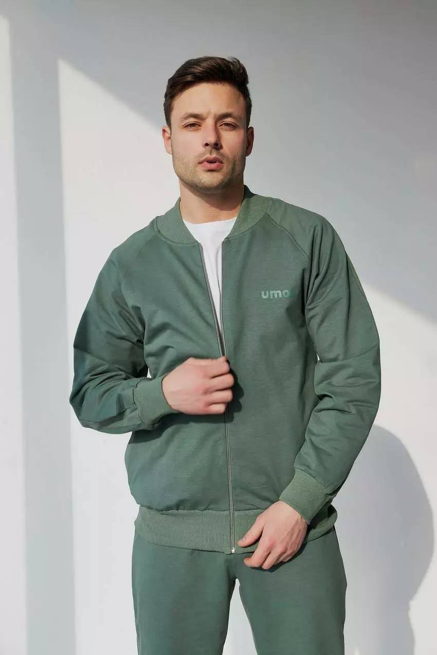 Спортивний костюм чоловічий на замку зі стійкою 2-нитка Umon темна оливка (М80.2) S