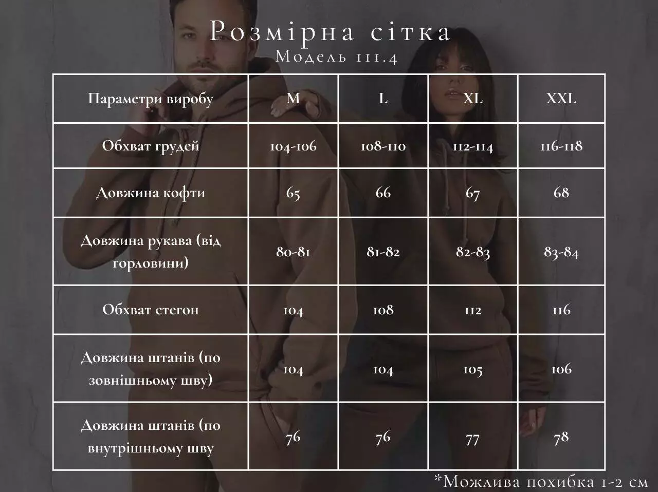 Чоловічий спортивний костюм з начосом (худі + джогери) — тепло, зручність і мінімалістичний стиль Теплий спортивний костюм із начосом — ідеальний варіант для холодної пори року. Комплект включає худі з капюшоном і зручні джогери, створюючи універсальний образ для повсякденного носіння, прогулянок або активного відпочинку. Худі має глибокий капюшон зі шнурками, занижену лінію плеча, кишеню «кенгуру» та м’який внутрішній начіс, що надає додаткового тепла. Класичний вільний крій дозволяє легко рухатися та поєднується з будь-яким верхнім одягом. Джогери з еластичним поясом, зав’язками, боковими кишенями та манжетами ідеально підходять для щоденного комфорту. Внутрішній начіс забезпечує утеплення, зберігаючи при цьому легкість і дихаючі властивості тканини. Костюм виготовлений із якісного трикотажу, стійкого до зношування та багаторазового прання. Переваги: Теплий начіс — ідеальний для осені та зими Худі з капюшоном і кишенею — зручно та функціонально Джогери з манжетами та поясом на резинці Сучасний вільний крій Практичний варіант для дому, міста, подорожей Чоловічий костюм з начосом — це тепло і стиль без компромісів!