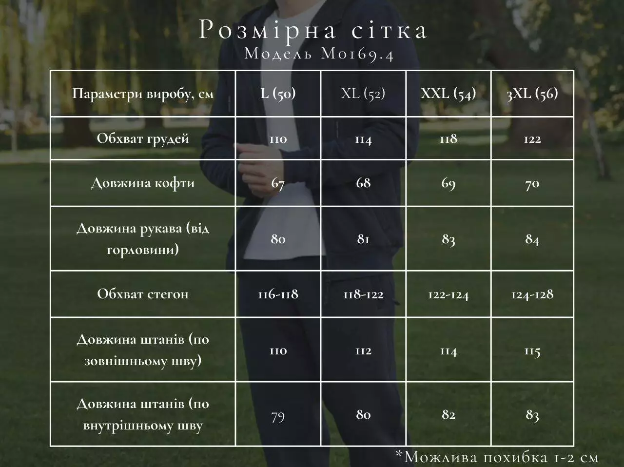 Чоловічий спортивний костюм з кофтою на замку та капюшоном — зручність, тепло і стиль для щоденних образів Функціональний і сучасний чоловічий спортивний костюм — ідеальний вибір для активного способу життя, прогулянок або повсякденного носіння. Комплект складається з кофти на блискавці з капюшоном і зручних штанів прямого або джогерного крою. Кофта оснащена повноцінною застібкою-блискавкою, капюшоном зі шнурками та бічними кишенями, що забезпечують комфорт і практичність у будь-яку погоду. М'яка та щільна тканина добре зберігає тепло та приємна до тіла. Штани мають зручний еластичний пояс із зав’язками, а також глибокі кишені для зберігання необхідних речей. Вільний крій не обмежує рухів, тому костюм чудово підходить як для занять спортом, так і для відпочинку. Лаконічний дизайн дозволяє комбінувати елементи костюма окремо з іншими речами у стилі casual або athleisure. Переваги: Кофта на блискавці з капюшоном та кишенями Зручні штани з еластичним поясом М’яка, щільна тканина — комфорт у холодну пору Практичний крій, що не обмежує рухів Підходить для спорту, прогулянок та повсякденного носіння Цей чоловічий костюм — надійний супутник у ритмі сучасного життя!