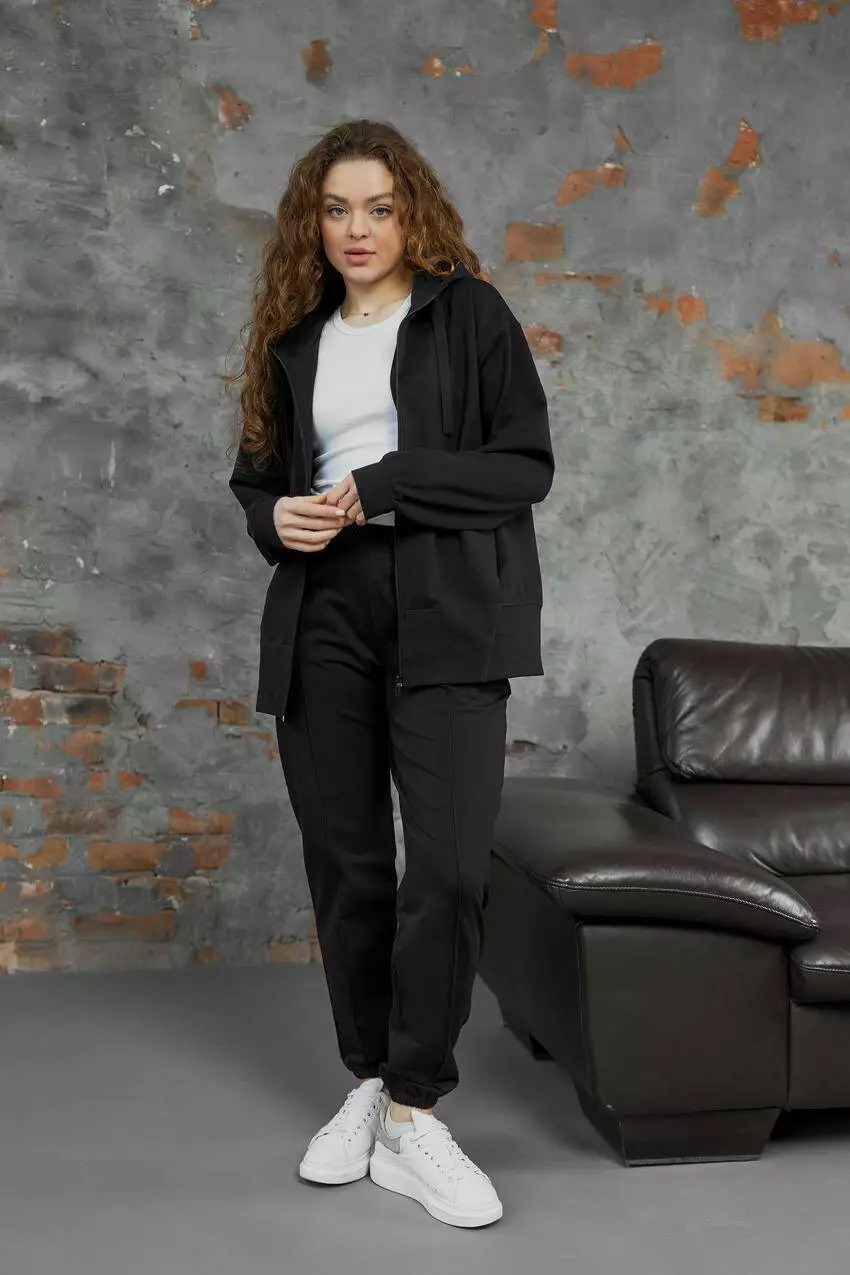 Спортивний костюм жіночий 2-х Батал (L-3XL) чорний (М125.2) L