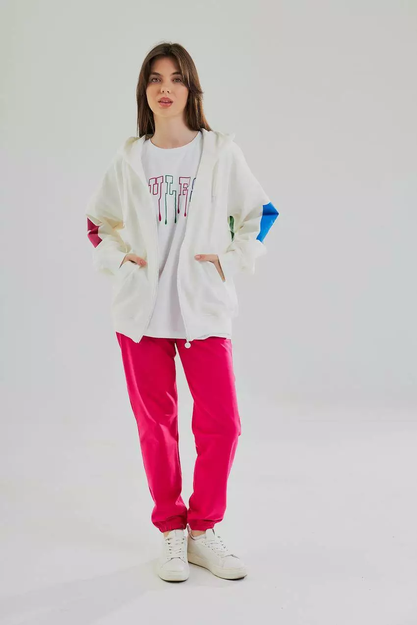 Жіночий спортивний костюм із двонитки: худі з написом UMON на замку та штани-джогери Стильний спортивний костюм створений для активного життя та щоденного комфорту. Виконаний із якісної двонитки, він забезпечує свободу рухів, приємний до тіла і практичний у носінні. Ідеальний для прогулянок, занять спортом чи відпочинку. Особливості моделі Худі: зручний крій, замок-блискавка, капюшон та стильний брендований напис UMON спереду. Штани: джогери з еластичним поясом і манжетами на штанинах для зручності. Матеріал: двонитка — м’який трикотаж, добре тримає форму та довго зберігає вигляд. Переваги Модний спортивно-повсякденний стиль. Брендований напис додає унікальності та впізнаваності образу. Практичність і комфорт у щоденному носінні.